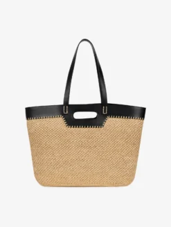 Sac Cabas En Raphia Naturel Et Cuir Noir