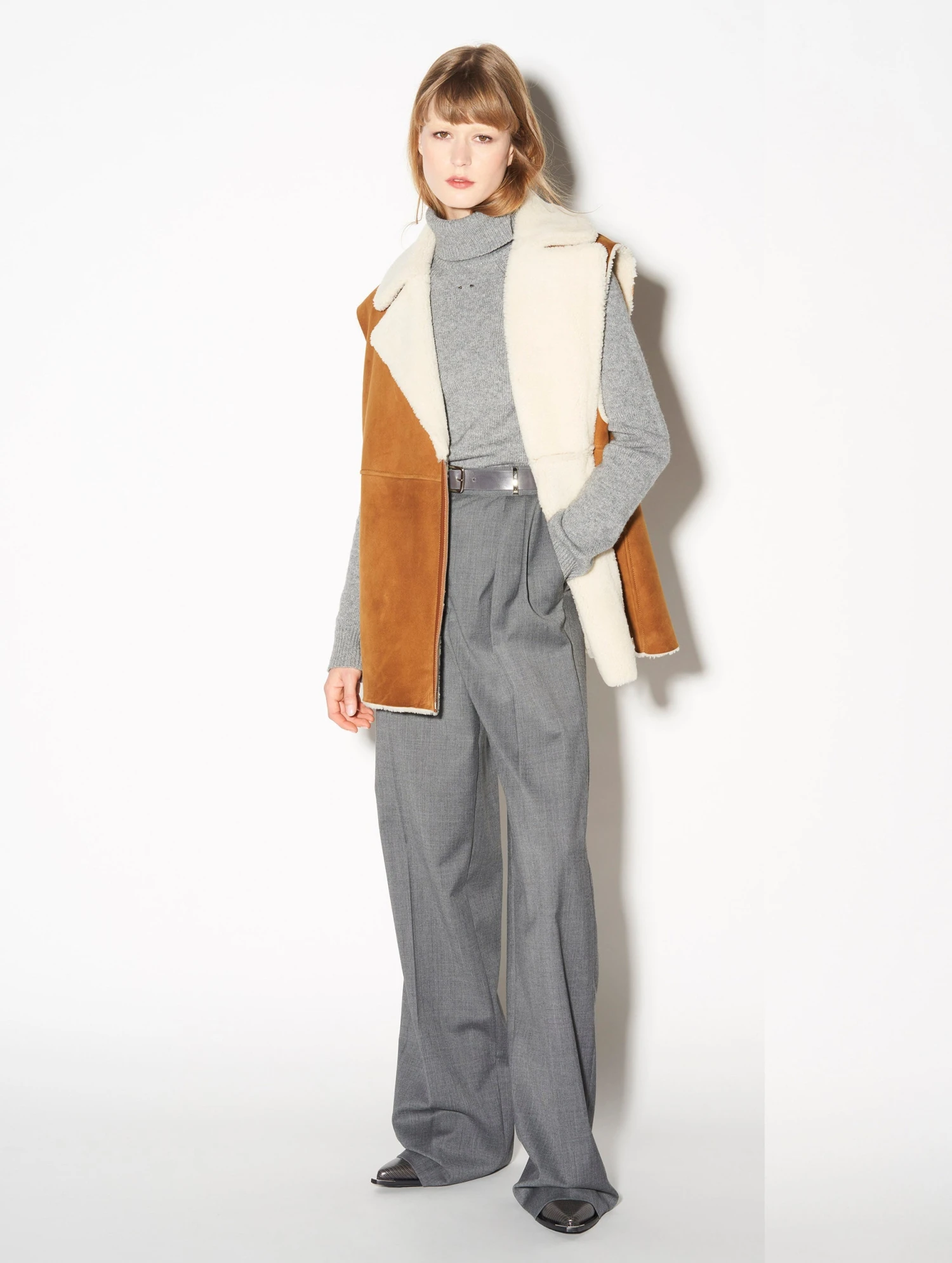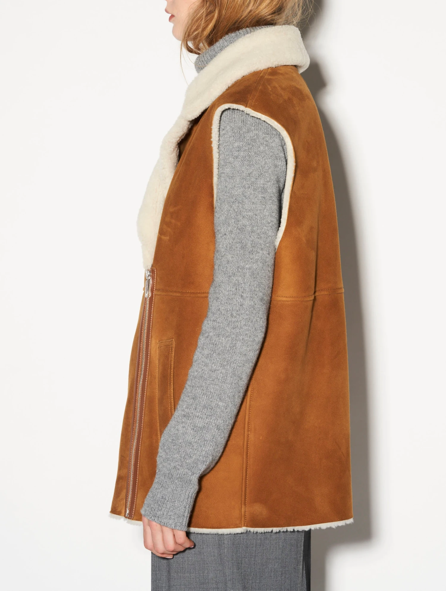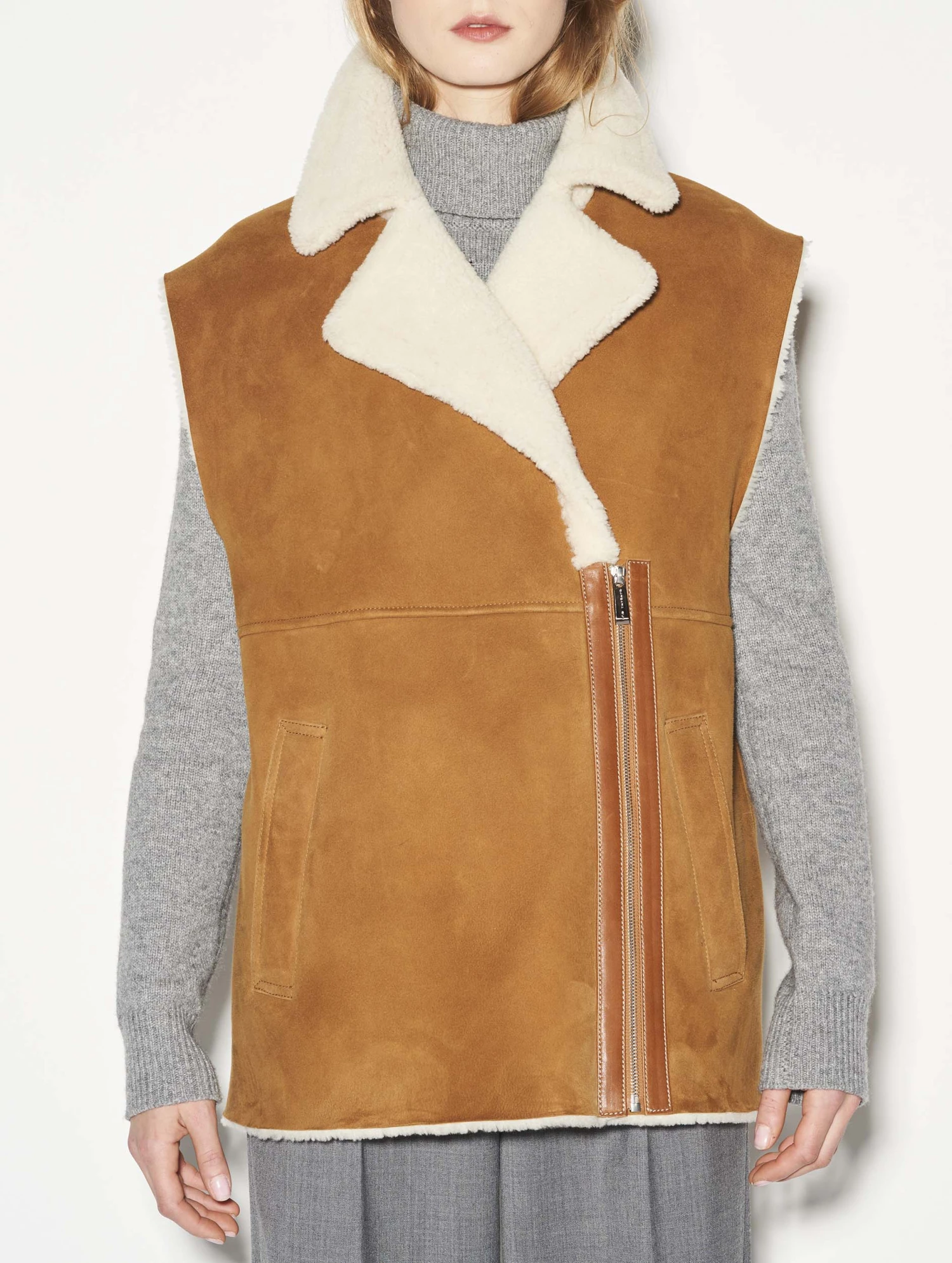 Blouson Sans Manches En Peau Lainée Camel