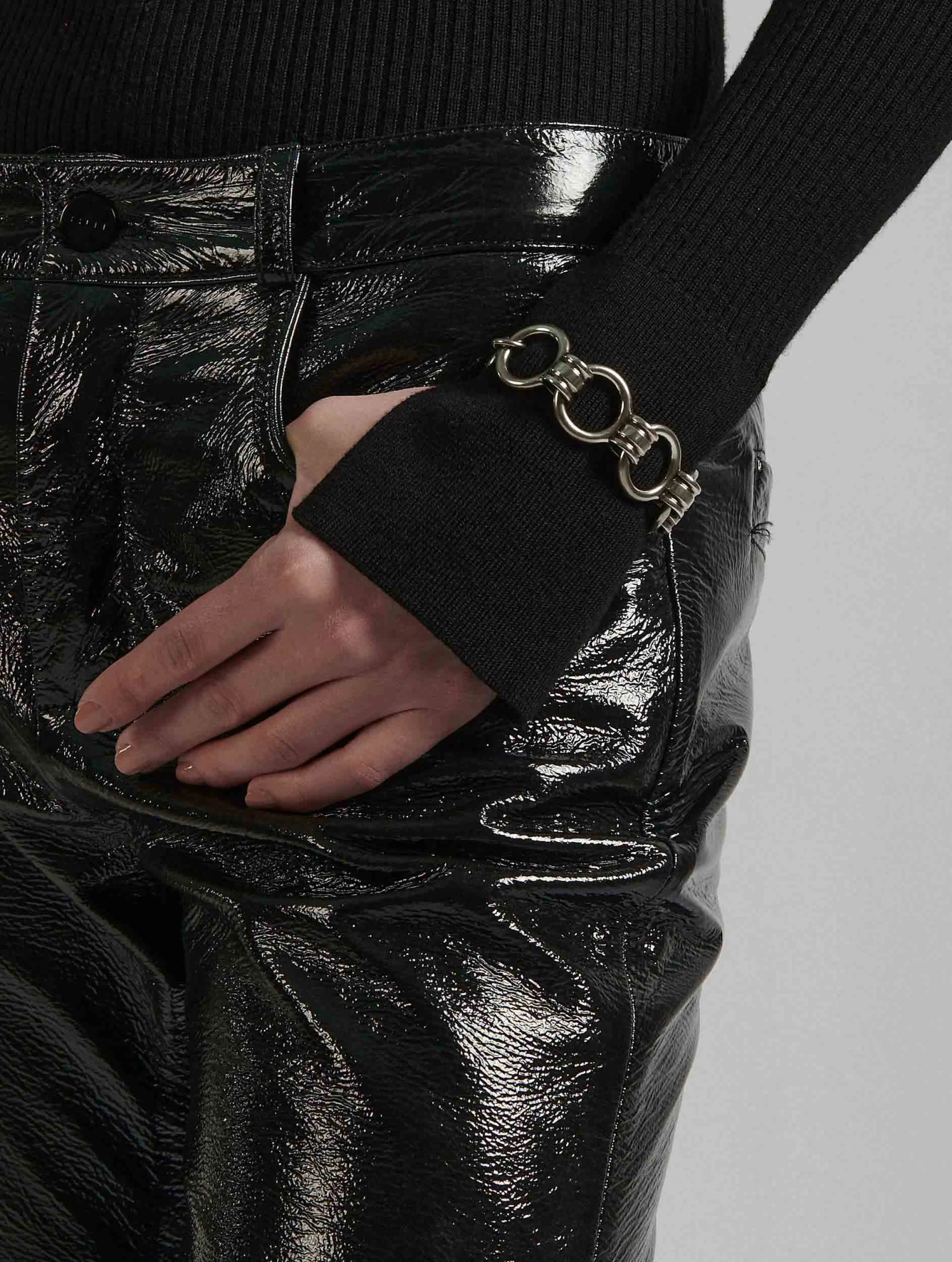 Bracelet chaîne finition vieil argent. Fermeture bouton de manchette.