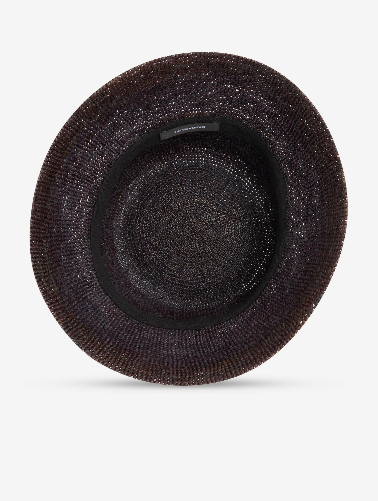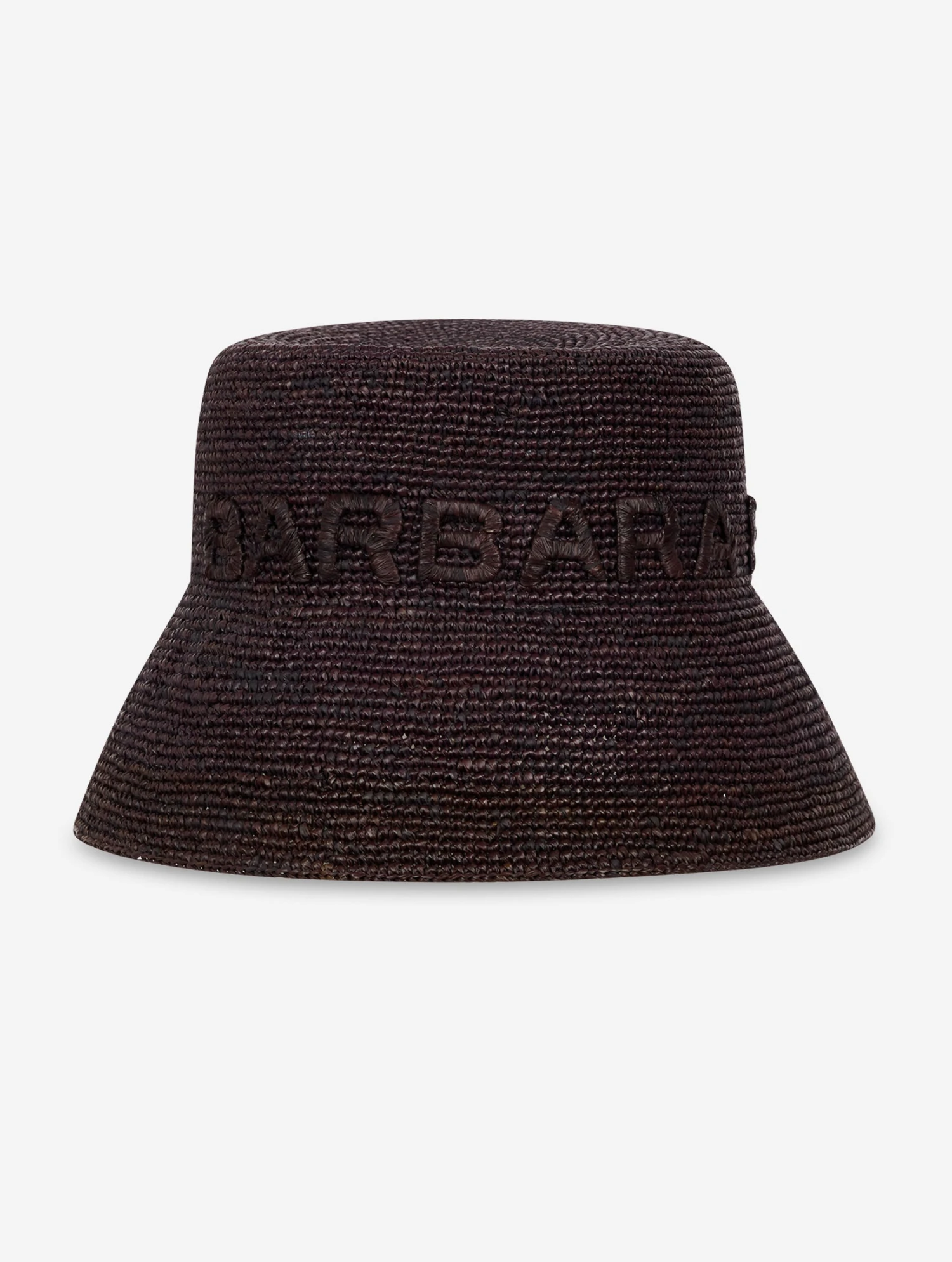 Chapeau en raphia noir tressé main, brodé du logo Barbara Bui en raphia ton sur ton.