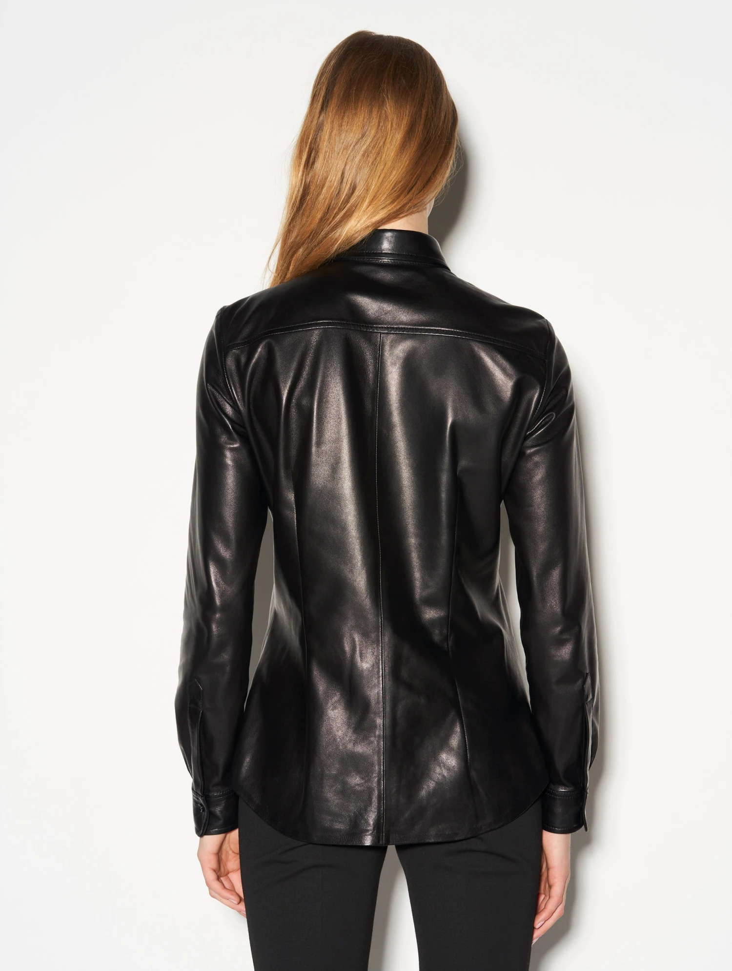 Chemise Cintrée En Cuir Plongé Noire