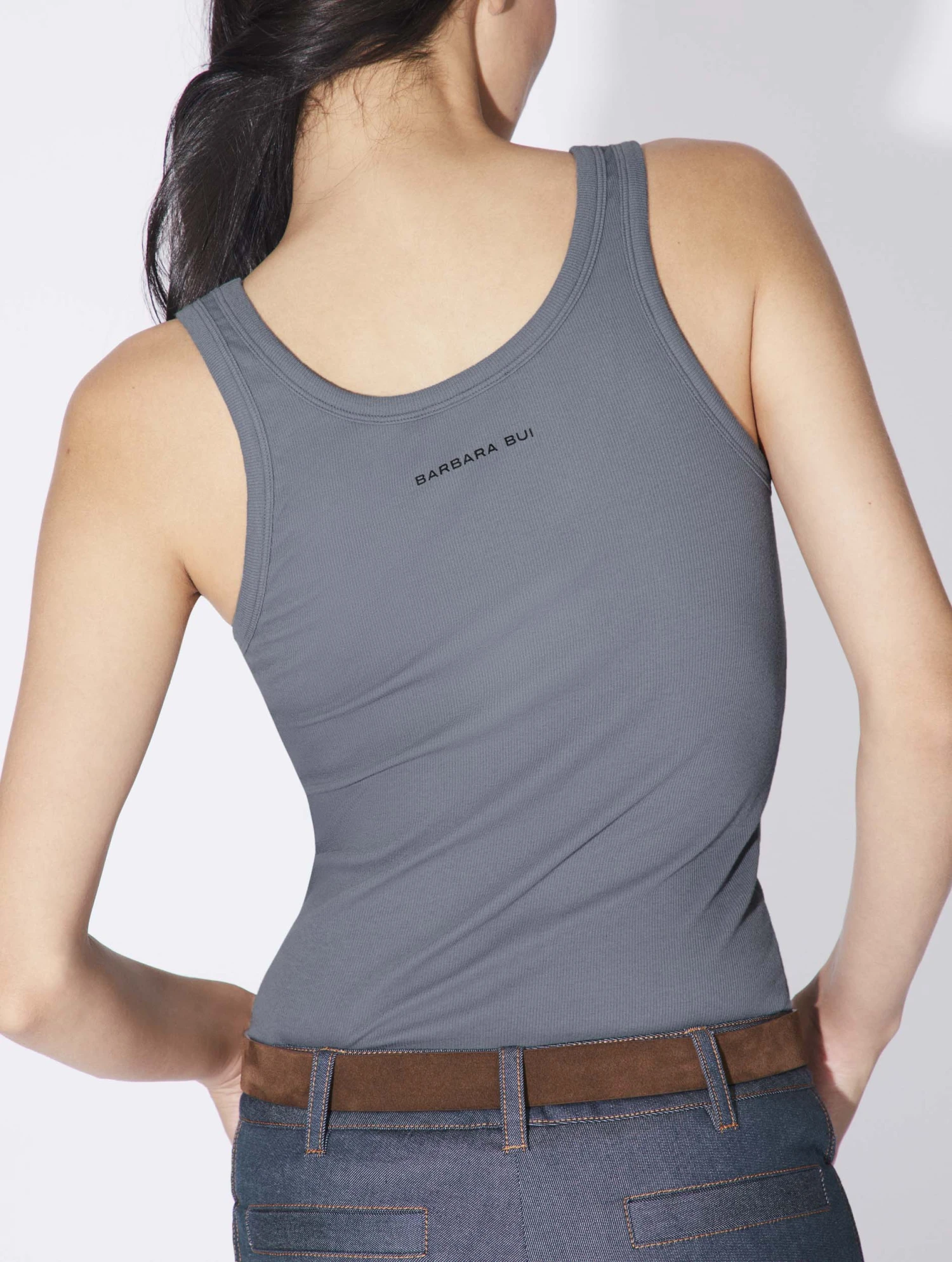 Débardeur Col Rond En Jersey à Côtes Bleu