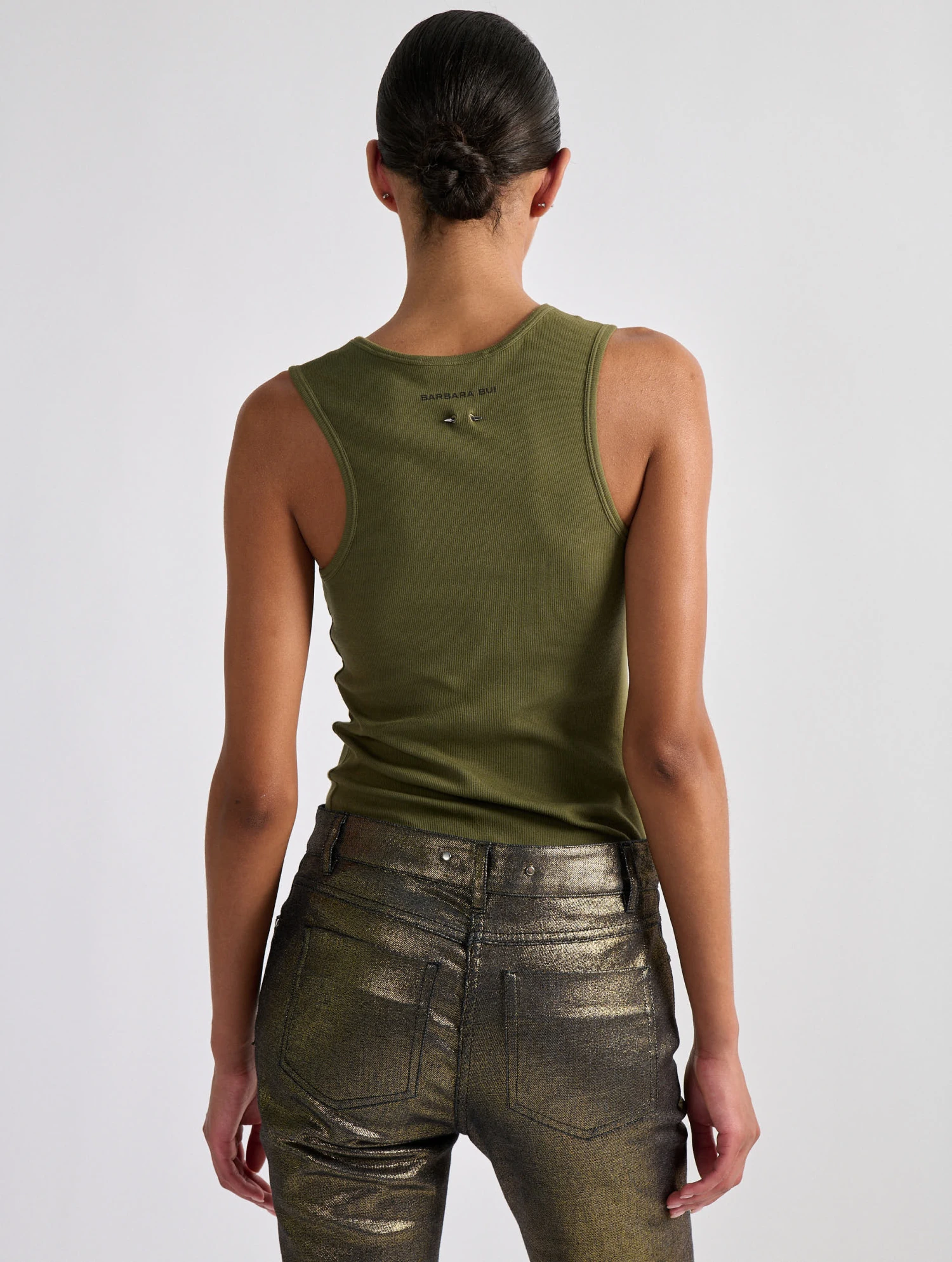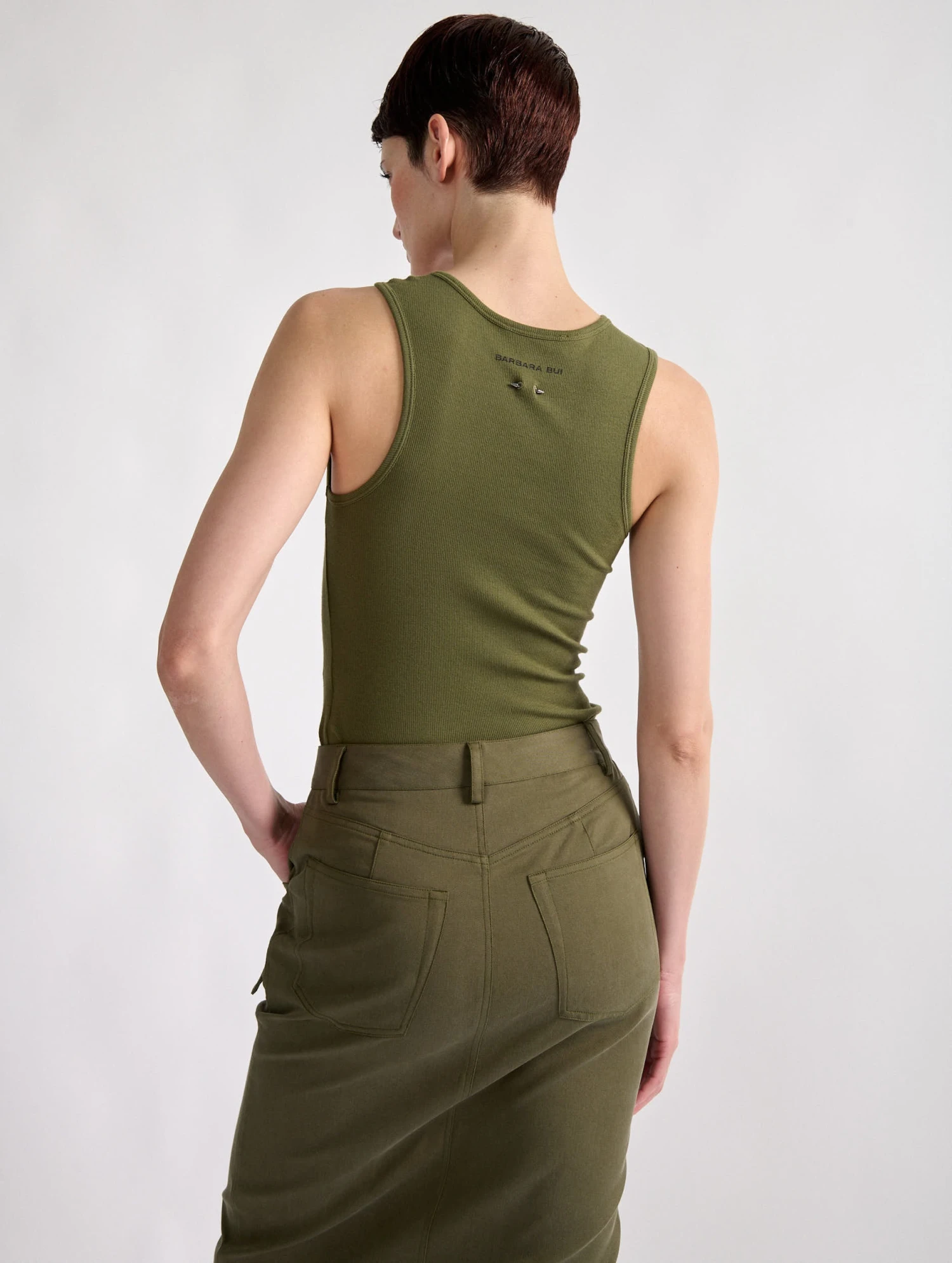Réalisé dans un jersey de coton stretch côtelé, ce débardeur est doté d’un jeu de drapé sur la manche, créant un effet asymétrique seyant à l’esprit couture revisité. Propose en kaki ou en noir, ce tee-shirt s’associe parfaitement à un pantalon en cuir, un modèle cargo ou à notre pantalon en toile métalisée.