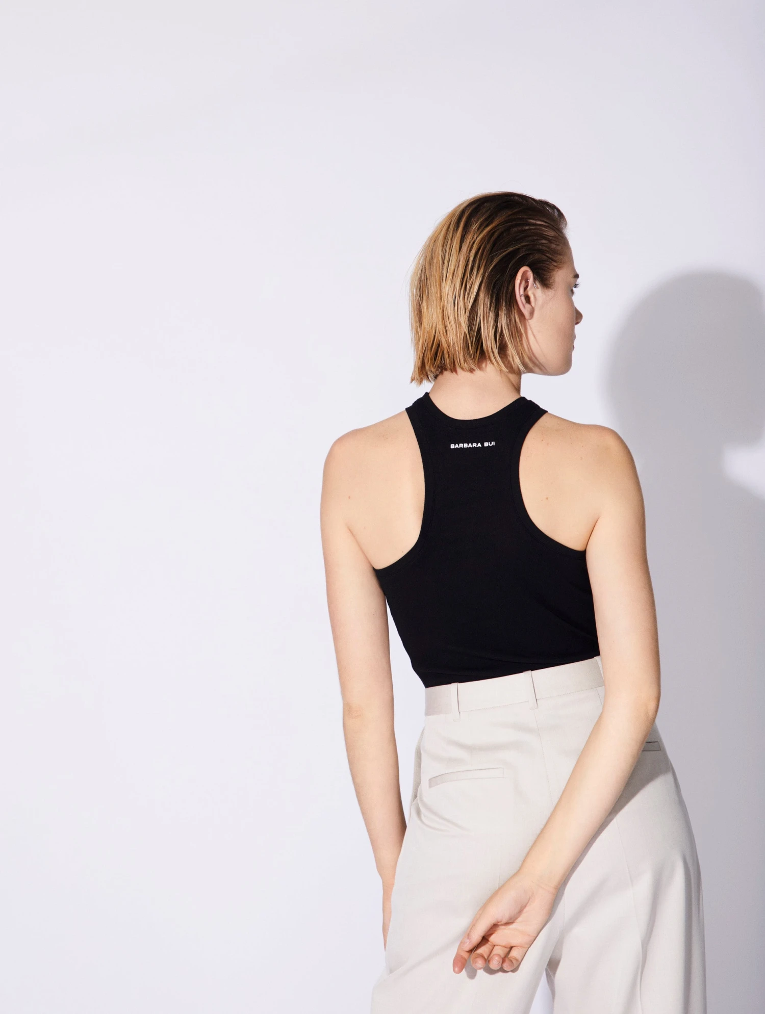 L’allure sport-chic chère à Barbara Bui est retravaillée avec la touche rock emblématique des collections de notre maison parisienne. Doté d’un bijou piercing amovible en métal argenté, ce débardeur pour femme vous habillera tout au long de la belle saison. Son encolure américaine et son dos nageur sculptent parfaitement la silhouette féminine. Proposé en coloris noir ou blanc, ce débardeur en jersey côtelé stretch doux et confortable est également décliné dans un coloris bleu.
