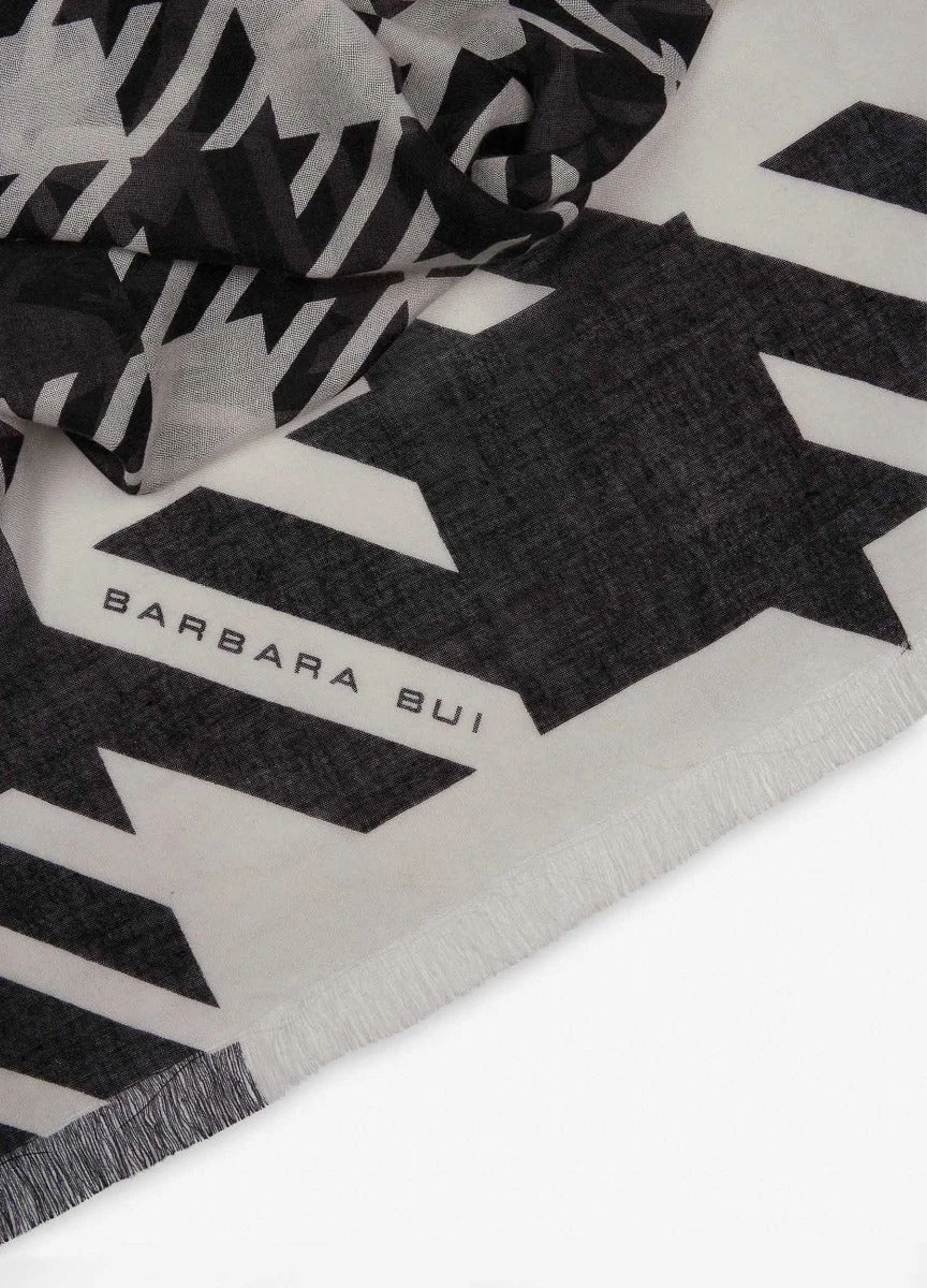 Foulard imprimé exclusif Barbara Bui en soie et cachemire. Imprimé carreaux noir et blanc.