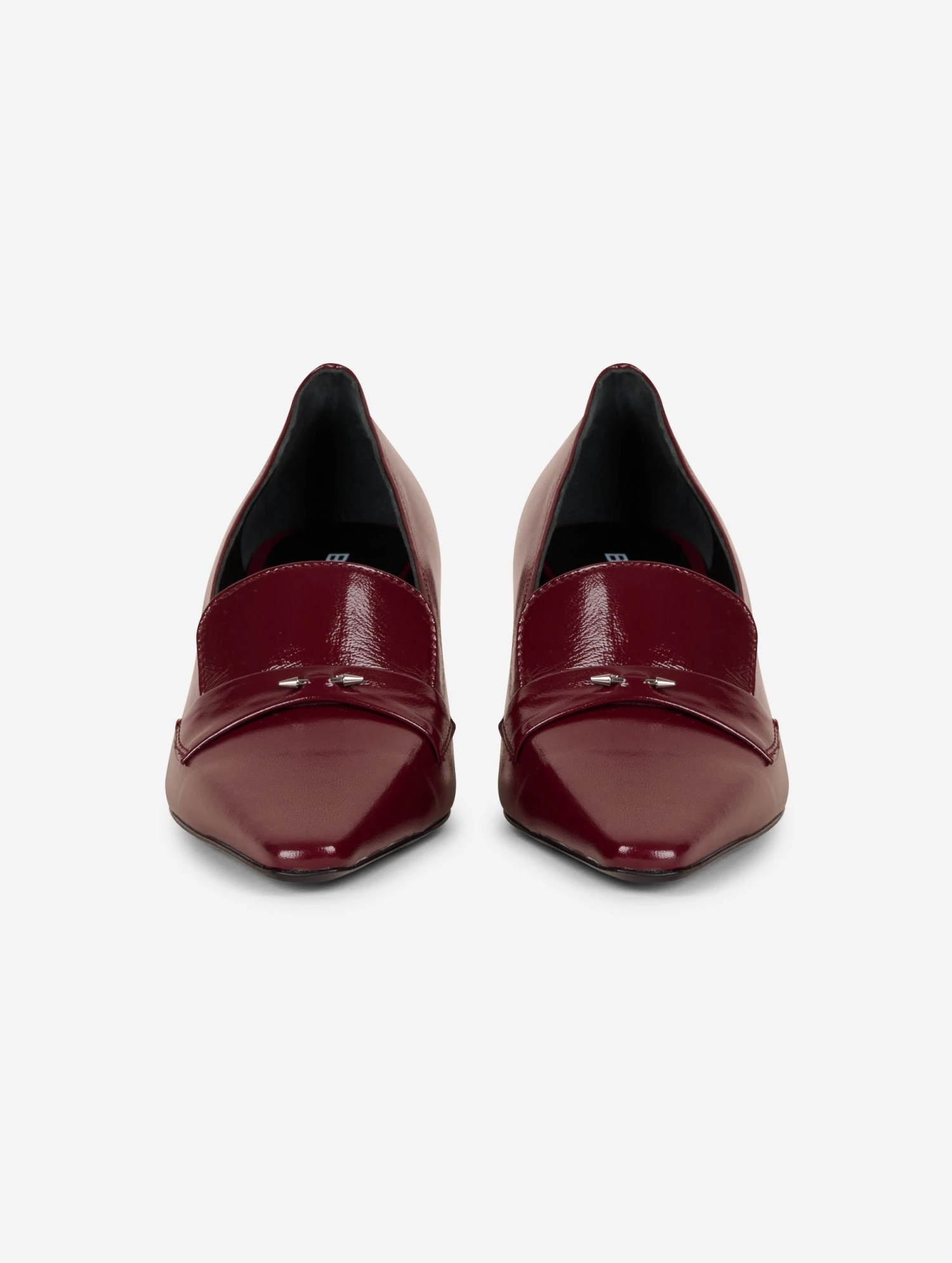 Mocassins en cuir nappa bordeaux orné de notre piercing signature en métal. Petit talon sexy de 5,5 cm recouvert de cuir ton sur ton.