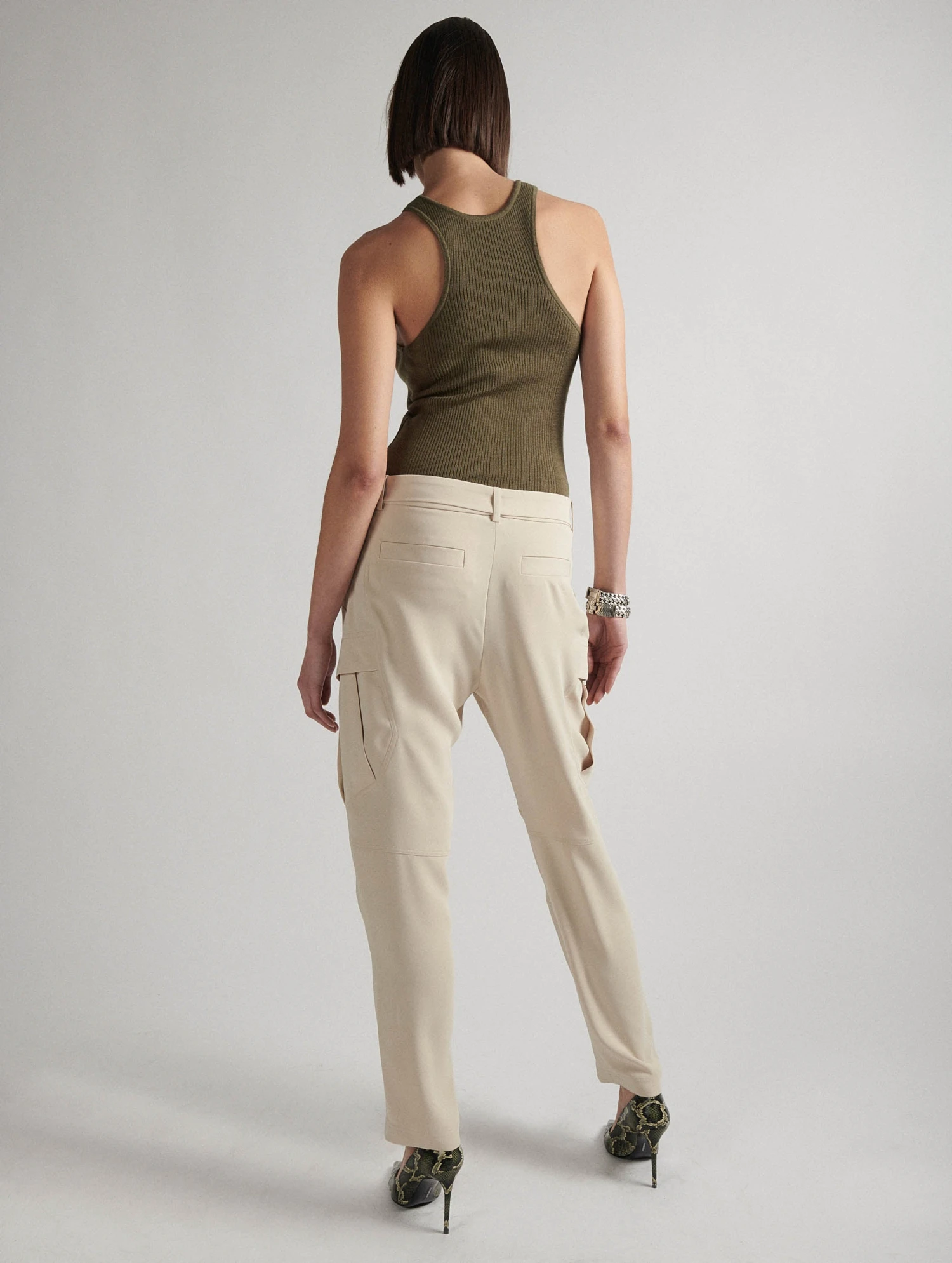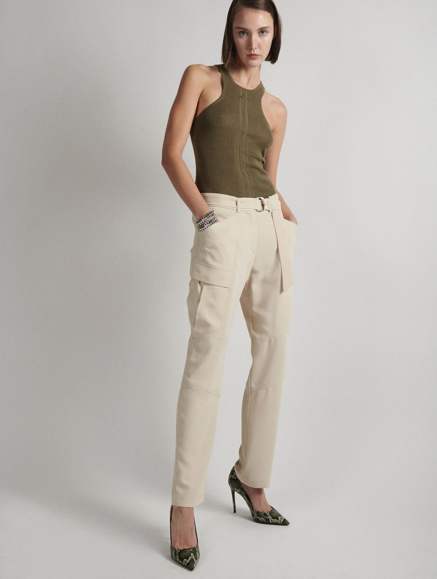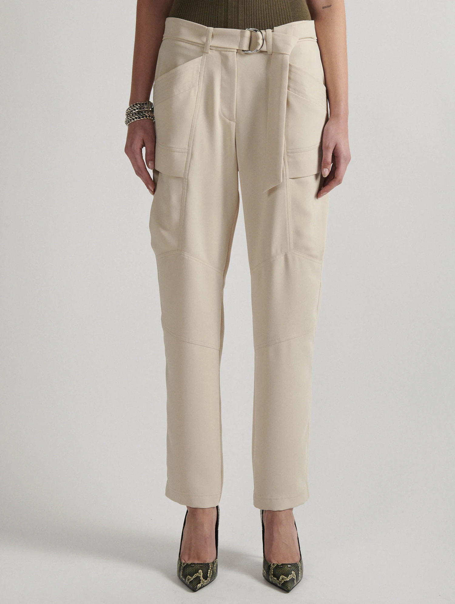 Pantalon Battle Ceinturé En Crêpe Fluide Sable
