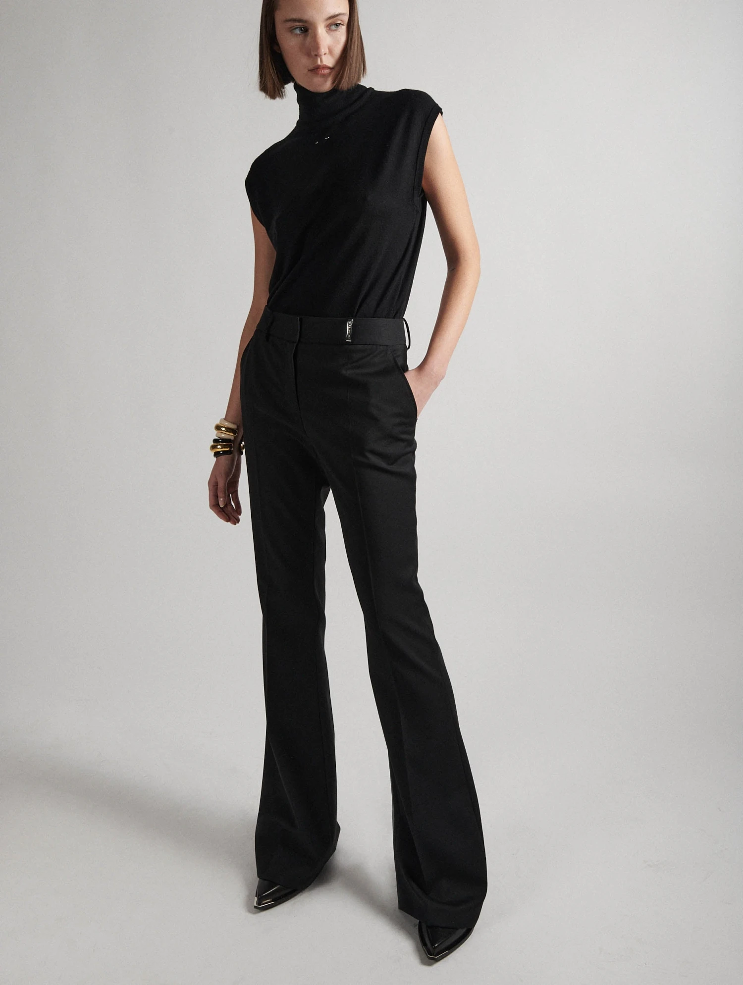 Seyant et flatteur, le pantalon coupe bootleg aux poches dos passepoilĂ©es sublime la silhouette. Un pli marquĂ© le long de la jambe promet une allure Ă©lancĂ©e, que vous le portiez avec une paire de talons ou des derbie’s plates. Ses passants, dont un passant bijou en mĂ©tal argentĂ© siglĂ© du nom de la Maison, permettent d’y glisser une ceinture en cuir embossĂ© ton sur ton. ConfectionnĂ© dans une confortable gabardine de laine stretch bordeaux ou noir, ce pantalon a Ă©tĂ© pensĂ© pour un look monochrome associĂ© Ă notre collection de pulls fins en maille mĂ©rinos.