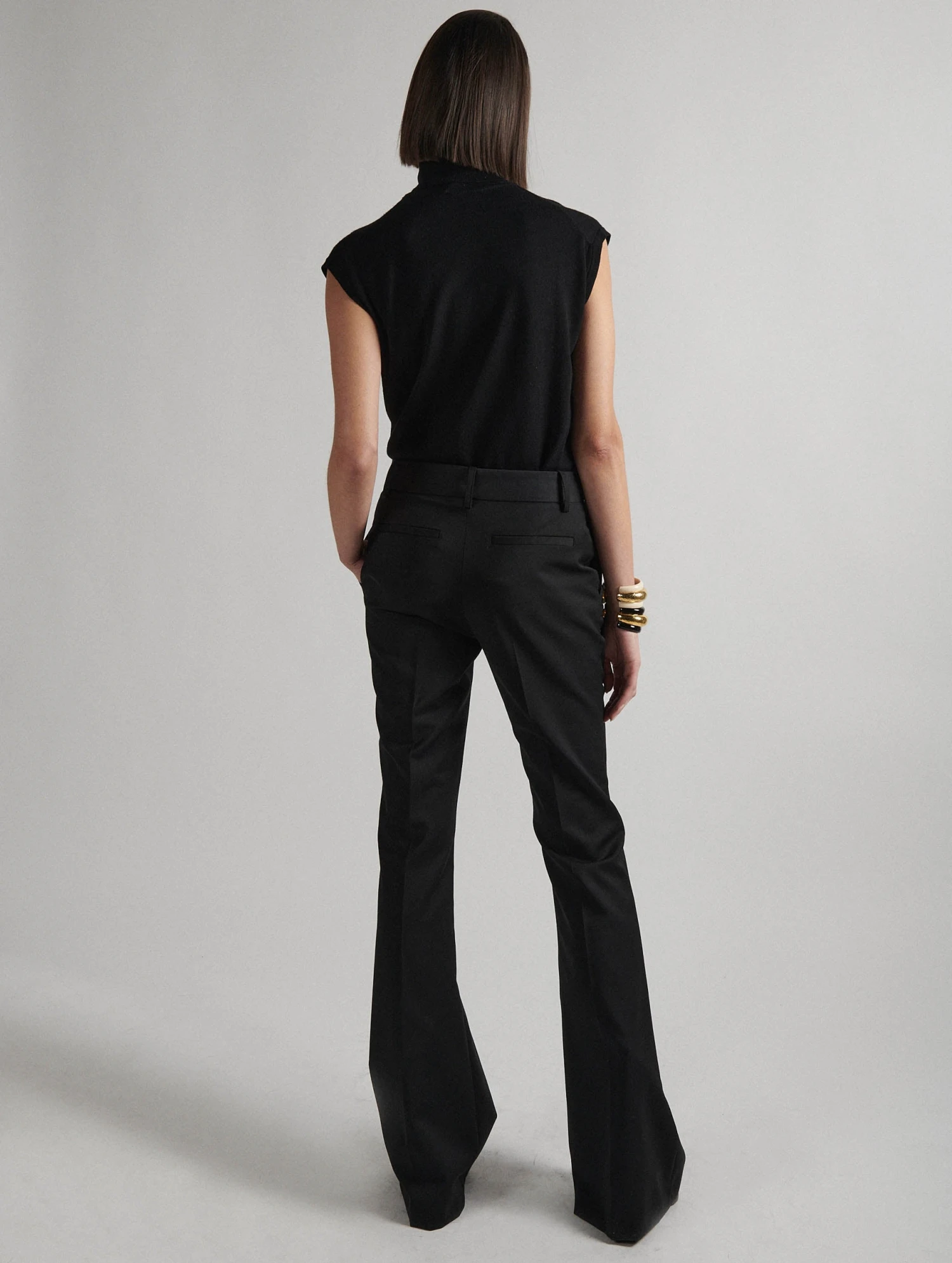 Pantalon Coupe Bootleg En Gabardine De Laine Noir