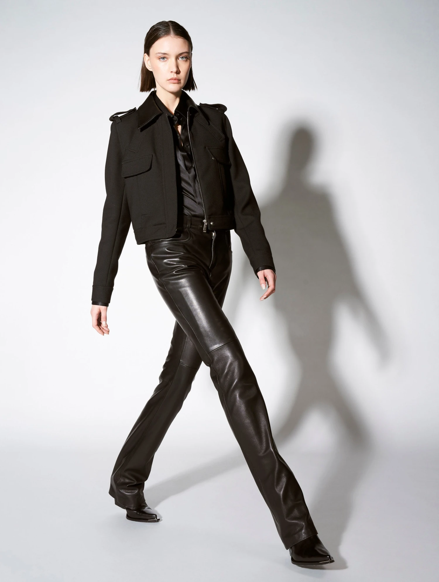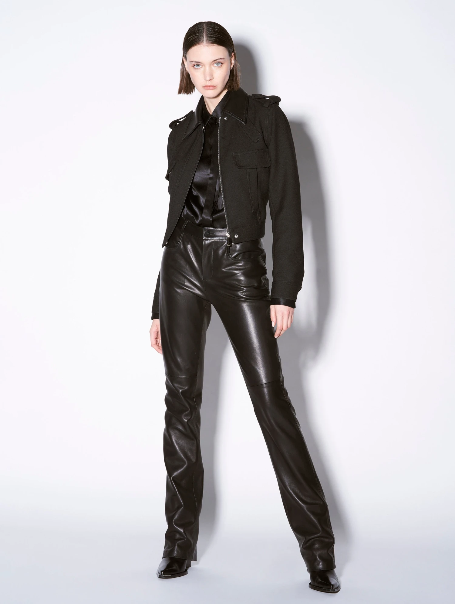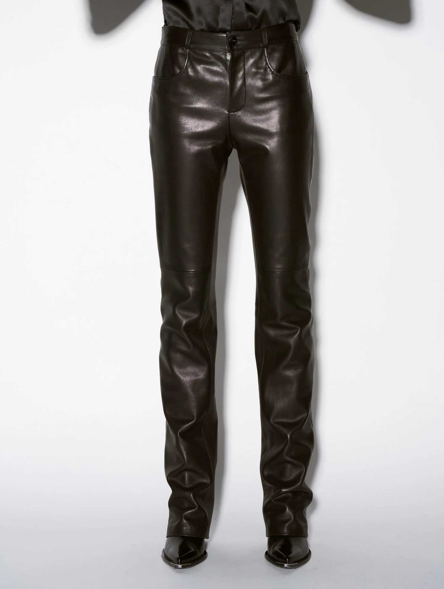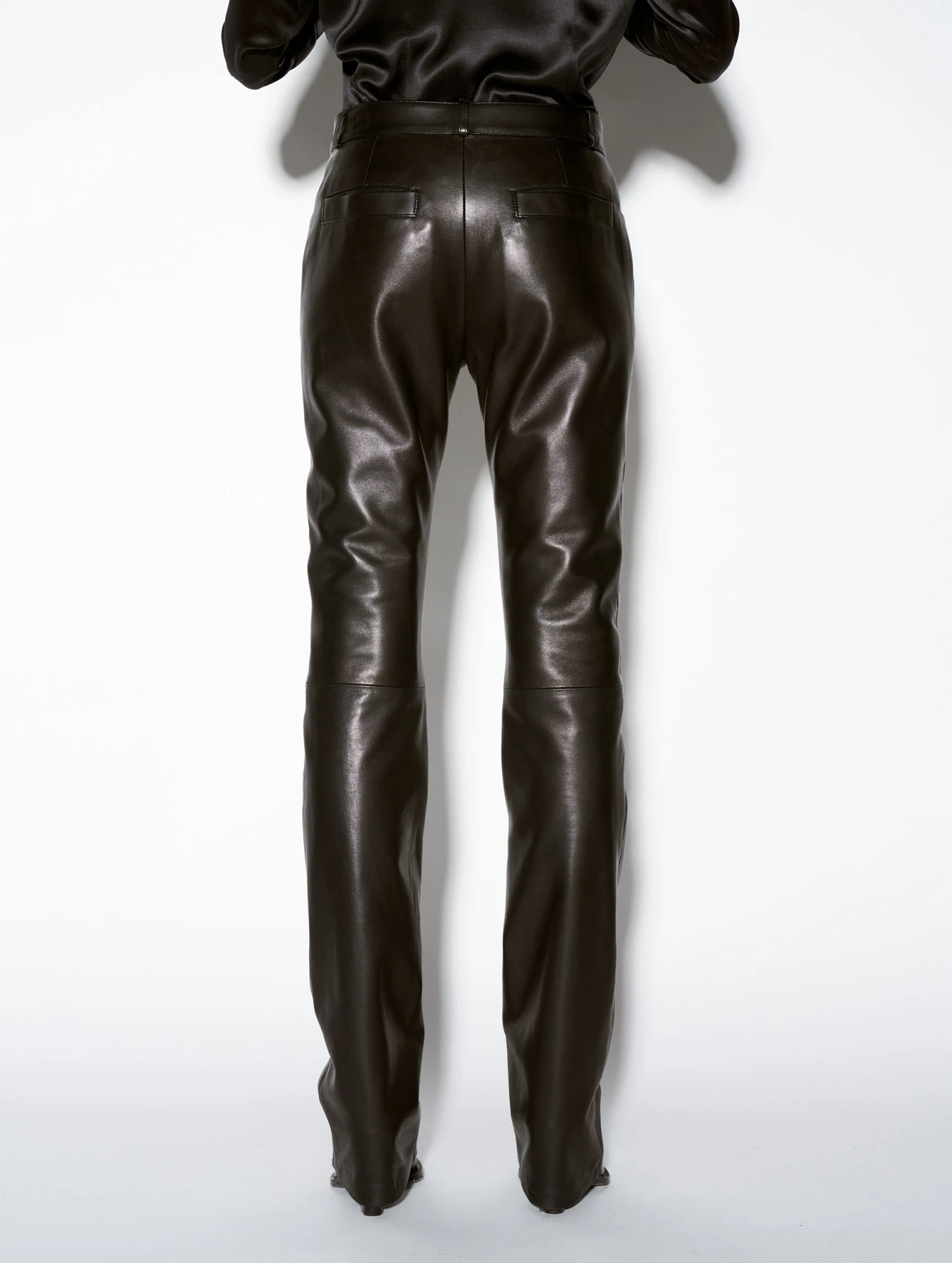 Pantalon Coupe Droite En Cuir Plongé Noir