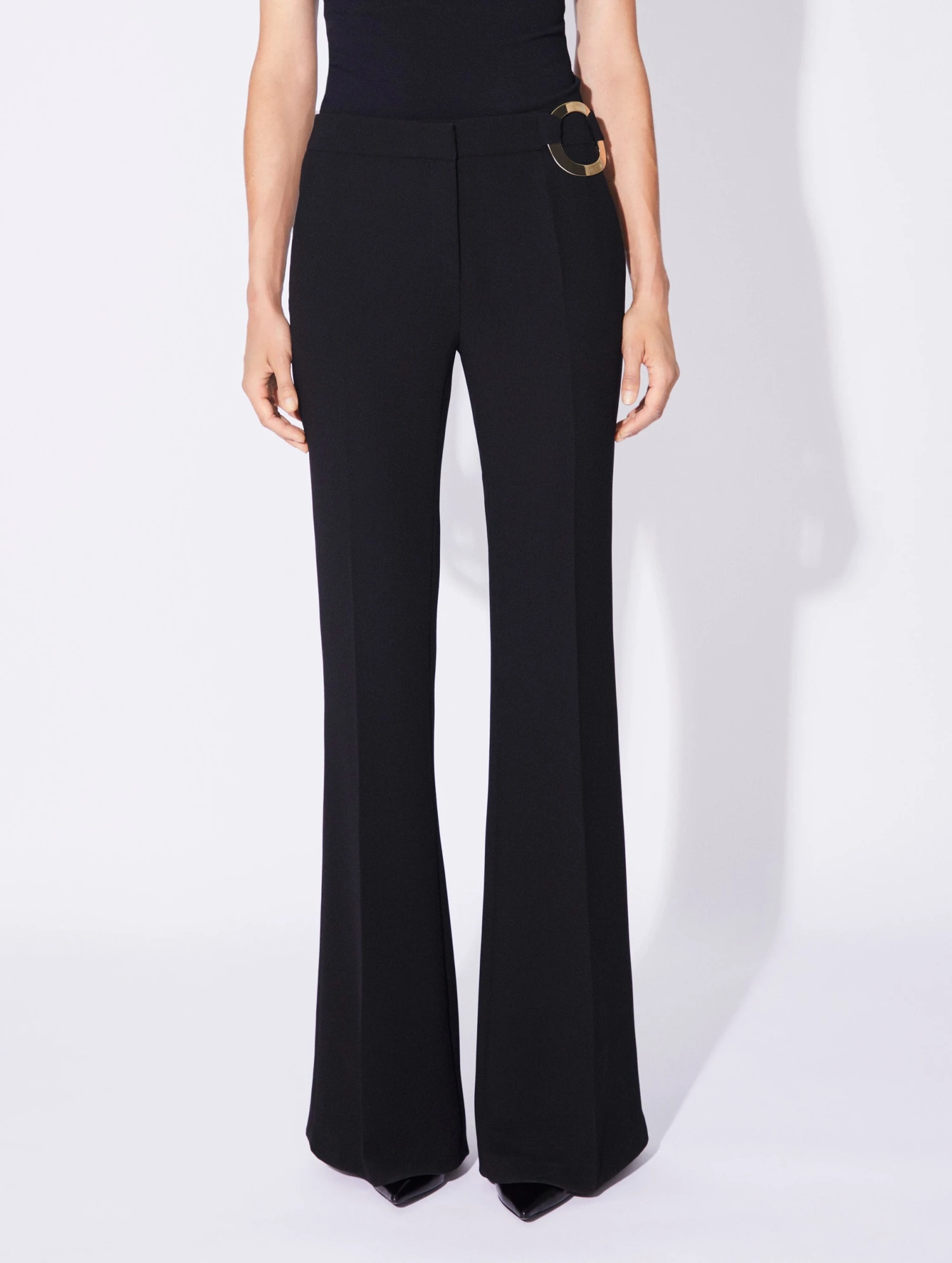 Pantalon Coupe Flare En Crêpe Noir à Boucle Bijou