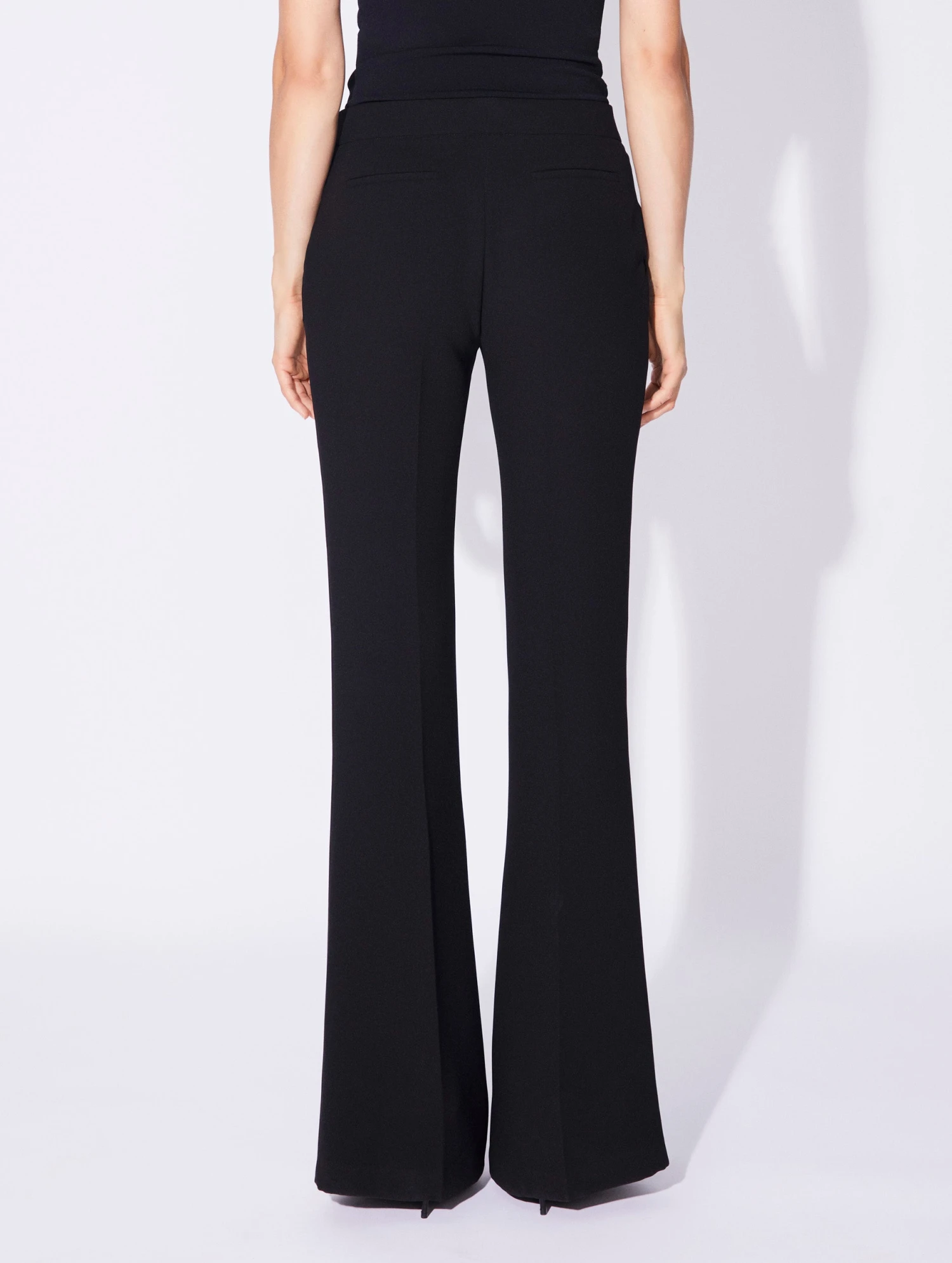 Vêtue de ce pantalon coupe flare, la silhouette féminine se fait instantanément plus longiligne. Sur le côté, ce pantalon femme en crêpe confortable s’habille d’une boucle métallique dorée. Porté avec notre haut manches courtes à encolure bateau, ce pantalon habillé empreinte leur allure racée à nos combinaisons favorites. Une patte de boutonnage cachée et des poches passepoilées à l’arrière affirment l’esprit structurée et minimaliste de cette pièce intemporelle proposée en crêpe noir ou en blanc lumineux. Portez ce pantalon flare avec une paire d’escarpins dont vous laisserez subtilement apparaître la pointe.