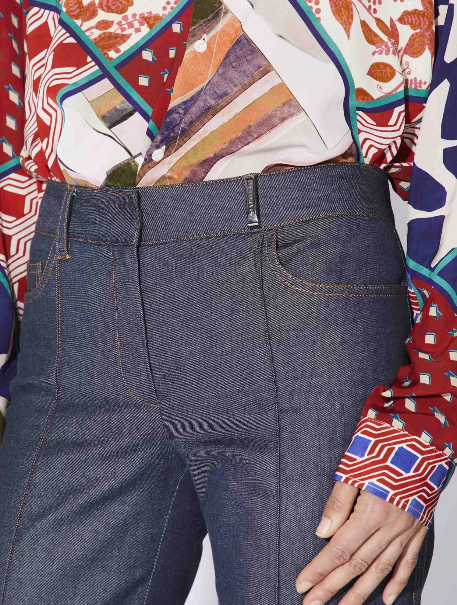 Inspirée par l’esprit des seventies, notre créatrice a imaginé ce pantalon à la coupe flare, évasée pour esquisser une silhouette sharp et féminine. Sa toile de denim lavé, déclinée en bleu, coloris crème ou tilleul, s’accordera aisément à toutes vos envies mode de la saison, que vous portiez ce pantalon femme avec une chemise imprimée, un pull fin ou notre caraco en lamé gold à l’occasion d’une soirée. Pli cousu, poches passepoilées et passants ceinture, dont un passant bijou siglé en métal argenté, prouvent que même les pièces plus décontractées de notre vestiaire ont droit à la même attention exigeante lorsqu’il est question de coupes et de finitions.