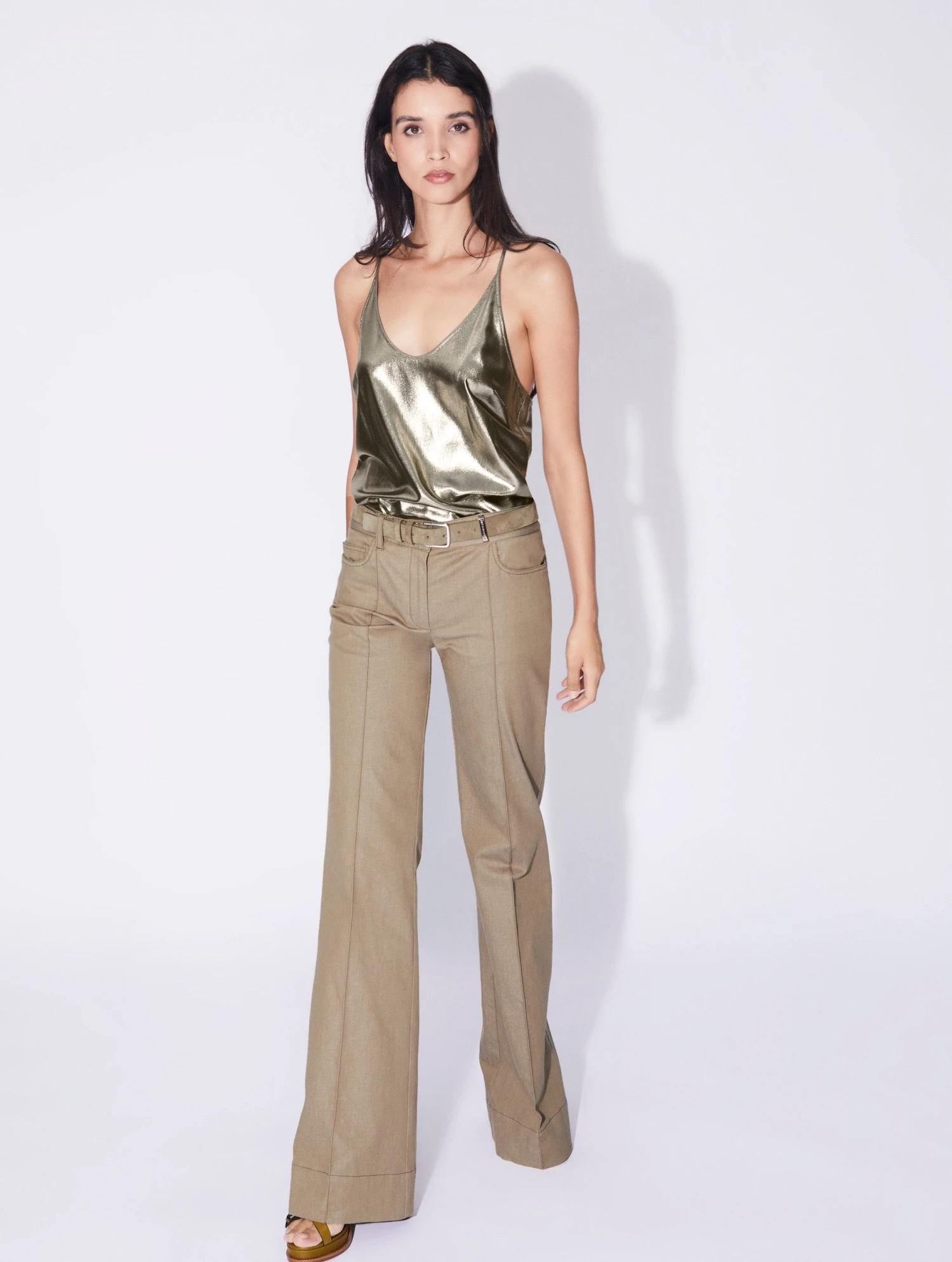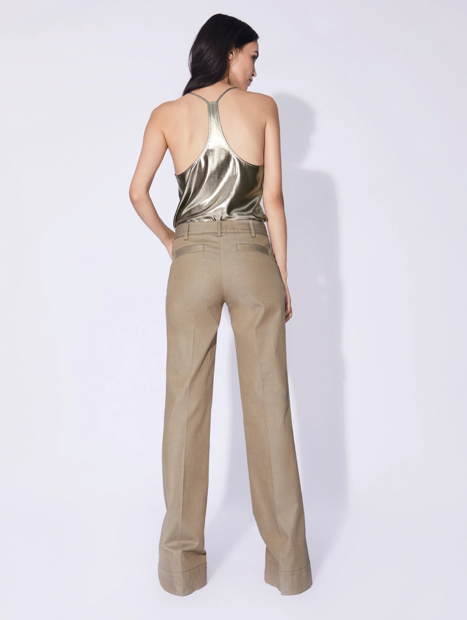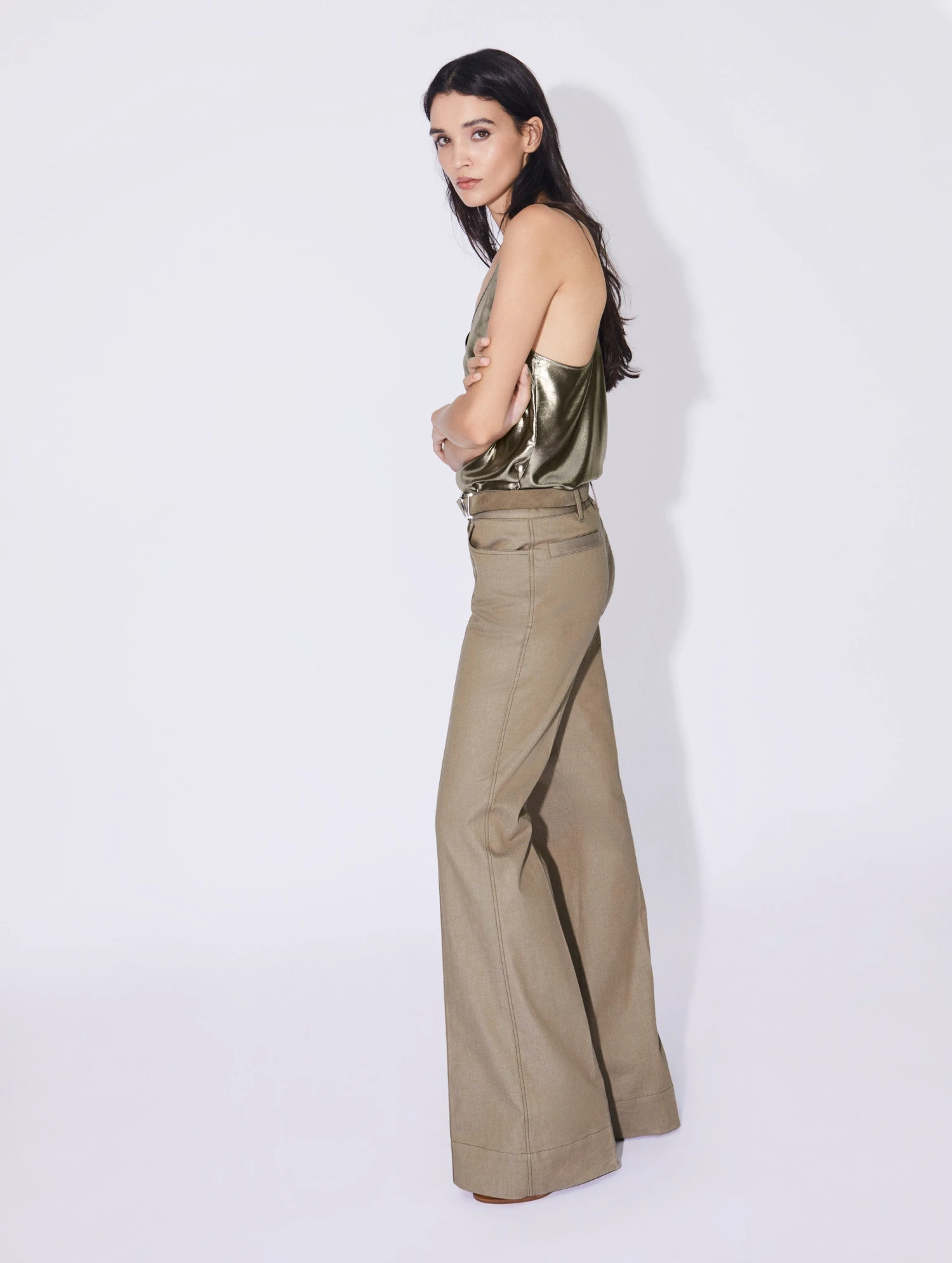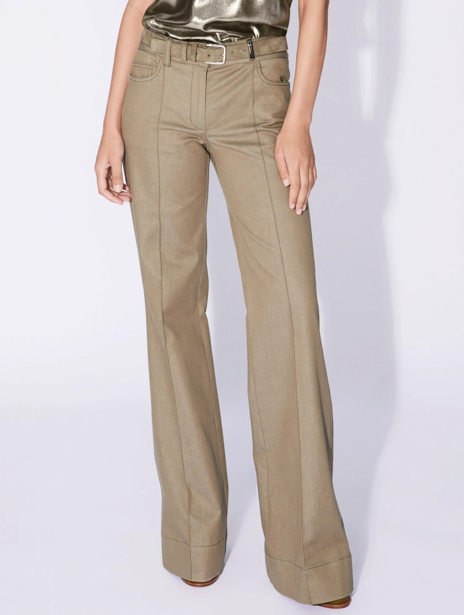 Inspirée par l’esprit des seventies, notre créatrice a imaginé ce pantalon à la coupe flare, évasée pour esquisser une silhouette sharp et féminine. Sa toile de denim lavé, déclinée en bleu, coloris crème ou tilleul, s’accordera aisément à toutes vos envies mode de la saison, que vous portiez ce pantalon femme avec une chemise imprimée, un pull fin ou notre caraco en lamé gold à l’occasion d’une soirée. Pli cousu, poches passepoilées et passants ceinture, dont un passant bijou siglé en métal argenté, prouvent que même les pièces plus décontractées de notre vestiaire ont droit à la même attention exigeante lorsqu’il est question de coupes et de finitions.