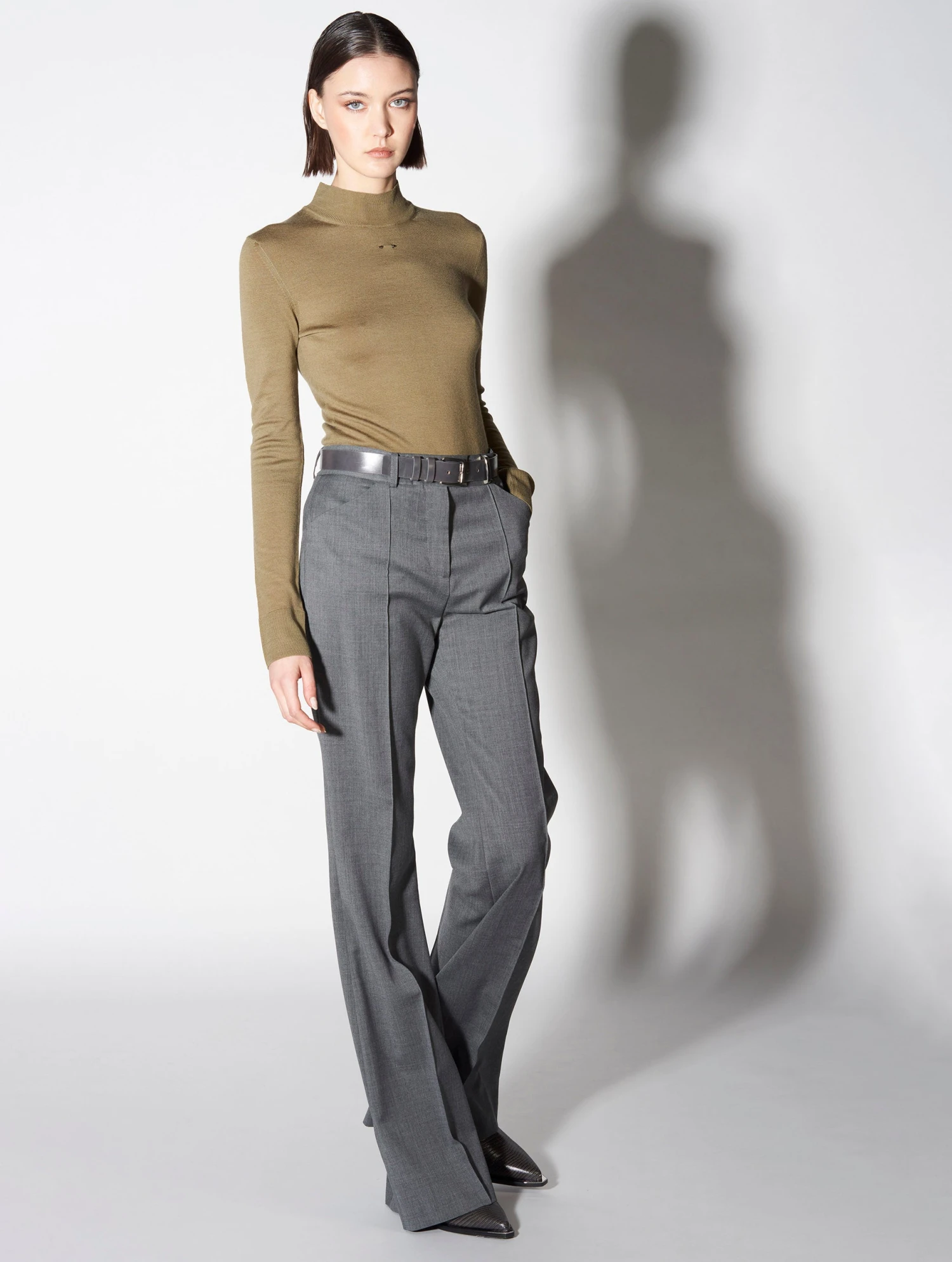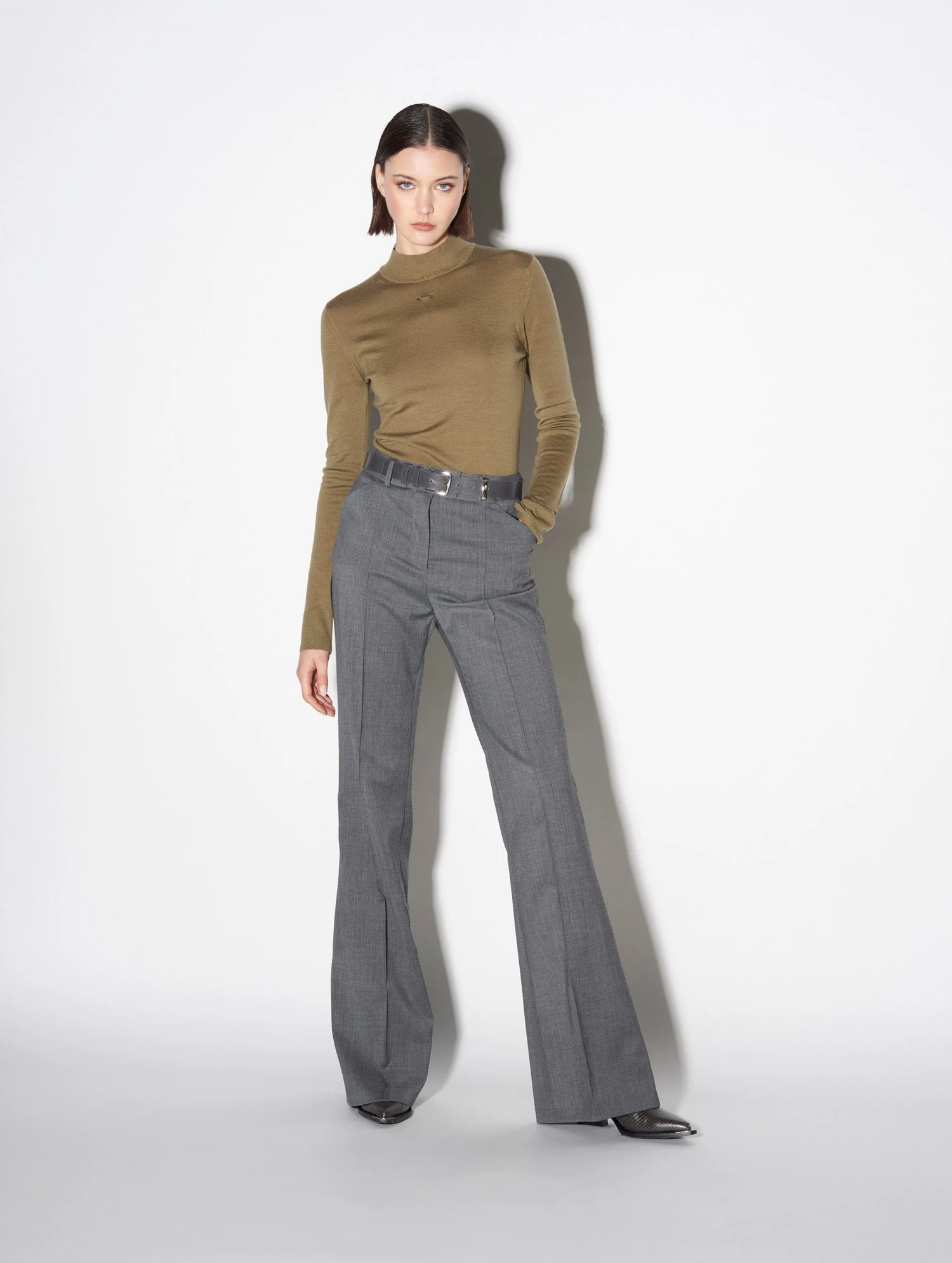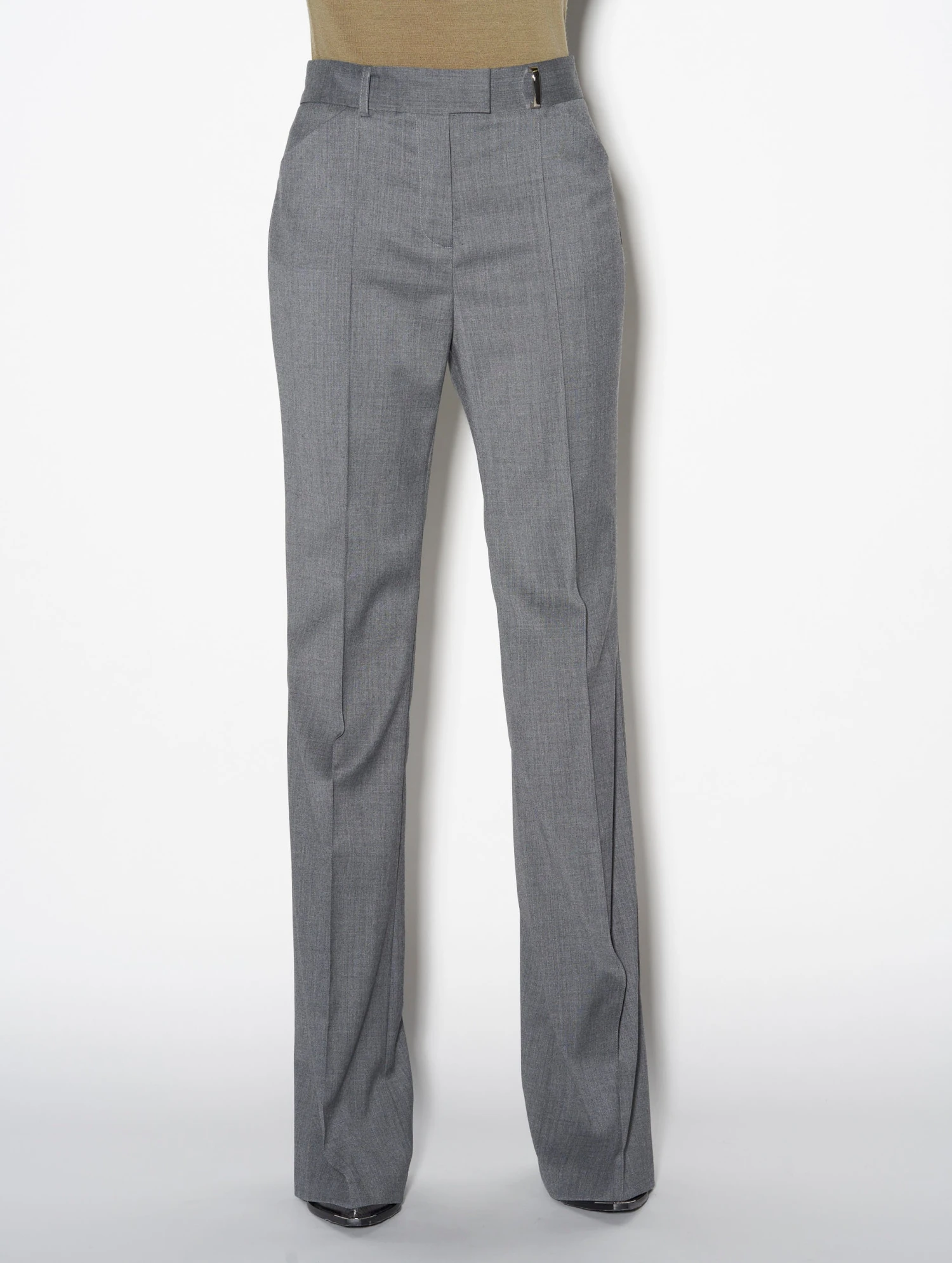 Pantalon Coupe Flare En Gabardine De Laine Gris