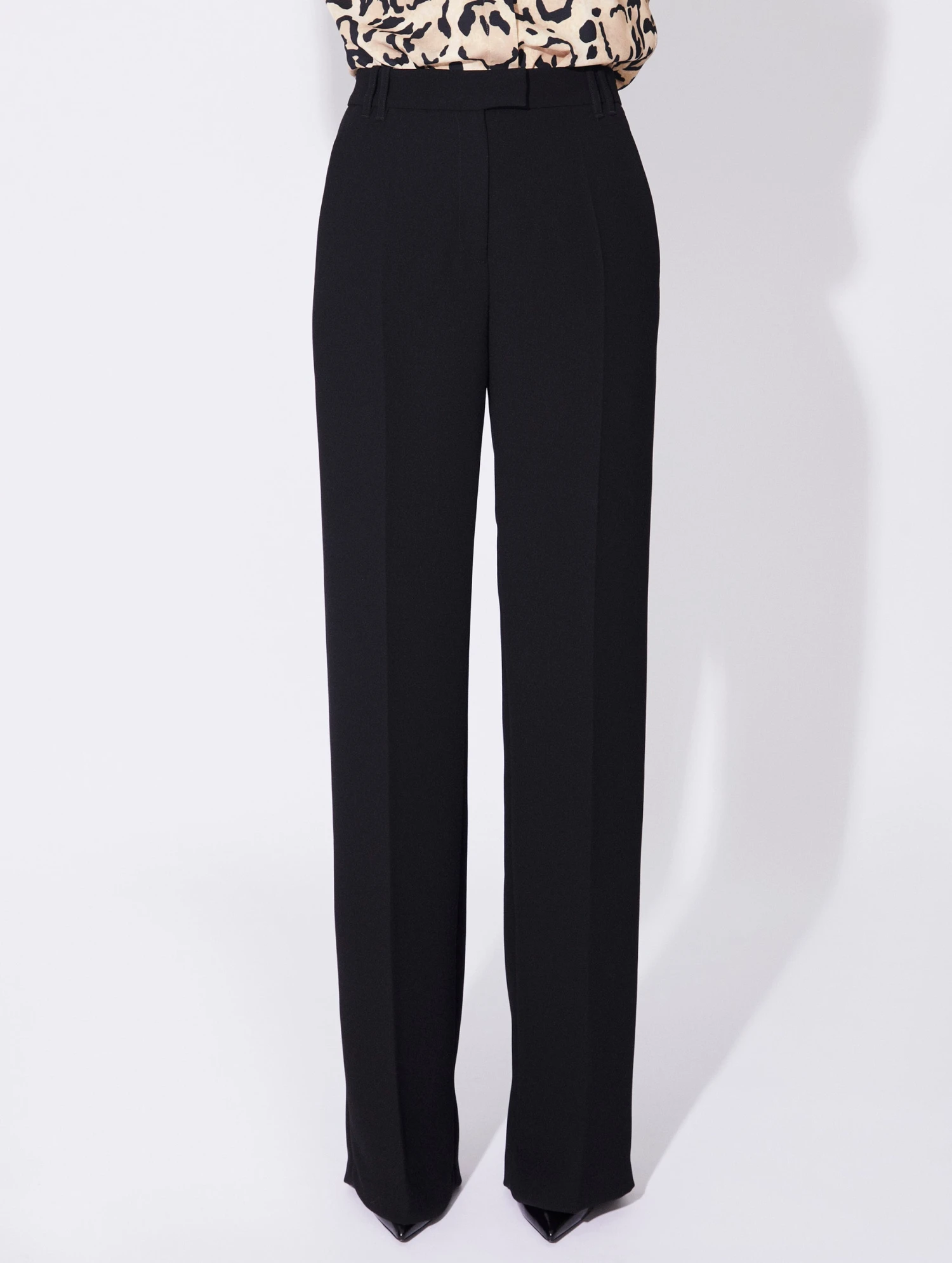 Pantalon Coupe Flare Taille Haute En Crêpe Noir