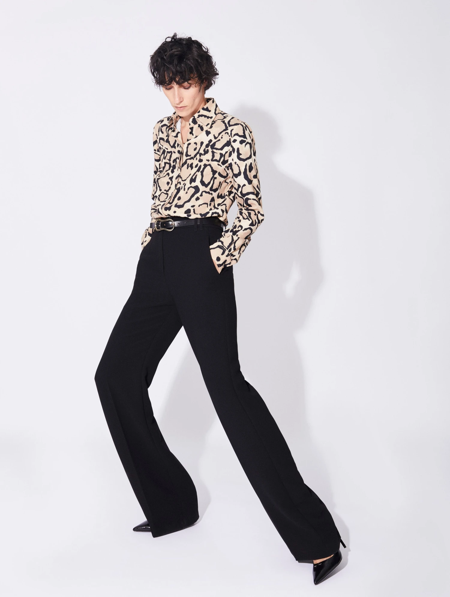 Pour une allure sculpturale, fiez-vous à cet intemporel pantalon de tailleur en crêpe fluide et confortable. Sa coupe taille haute et sa jambe large au pli marqué, élégamment évasée sur le bas de jambe, promettent une silhouette longiligne et élancée. De confortables poches italiennes et des poches passepoilées au dos soulignent l’attention portée par Barbara Bui au confort et à l’attitude de la femme qui portera ses créations. Une chemise en satin de soie savamment glissée dans ce pantalon de costume femme en soulignera l’élégance d’inspiration masculine. En crêpe noir, blanc ou vert tilleul, ce pantalon flare à la taille haute se porte seul comme coordonné aux vestes de costume de notre collection.