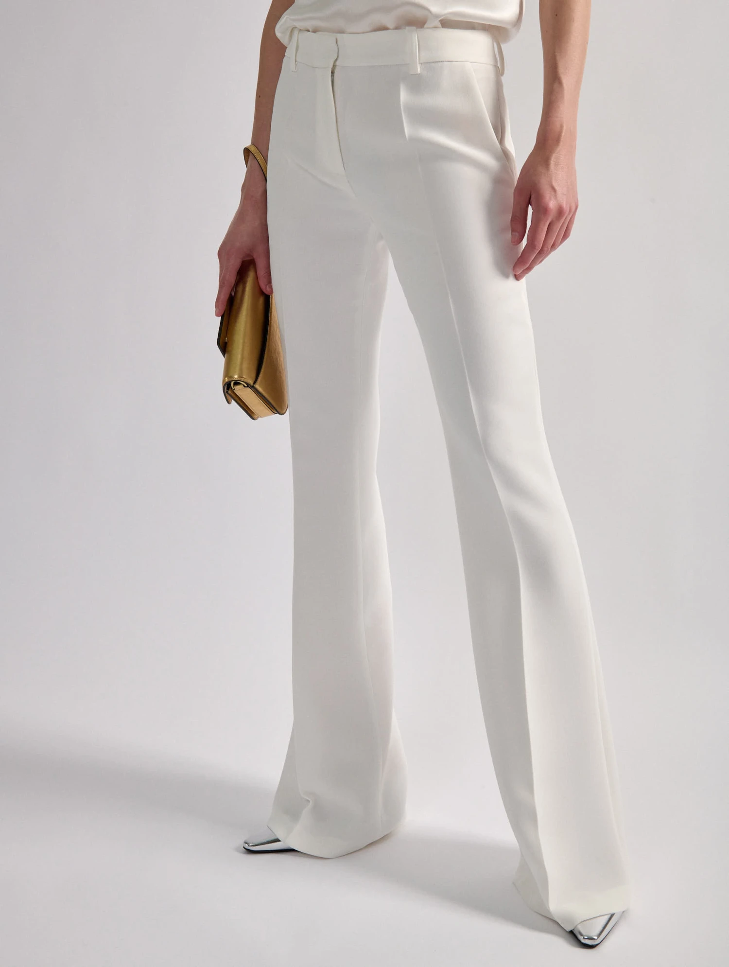 Fidèle à sa signature « sharp and cut », Barbara Bui imagine des pantalons aux coupes impeccables, promesse d’une silhouette longiligne. Grâce à son pli marqué le long de la jambe et sa coupe bootleg évasée, ce pantalon en crêpe offre un porté flatteur. Associez ce modèle proposé en coloris bleu ou ivoire lumineux avec la veste de costume assortie pour une allure sophistiquée éminemment féminine.