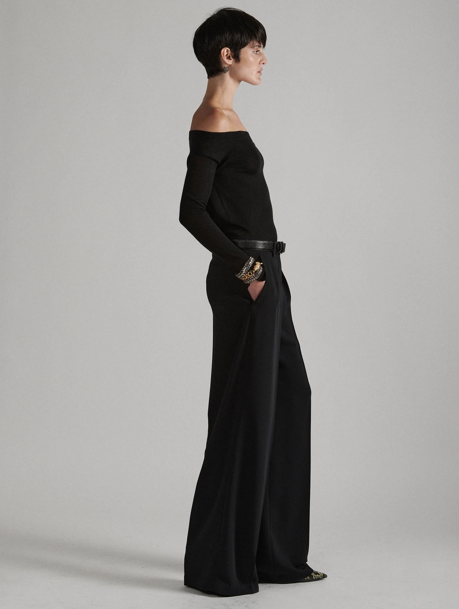 Agréable au porté, notre crêpe fluide et confortable est idéal pour l’entrée de saison. Ce pantalon décliné en noir ou kaki présente une coupe jambes larges avec un jeu de volume soigné souligné par des pinces prolongées d’un pli marqué. Porté taille basse, il dispose de poches italiennes et de poches passepoil au dos. Il se portera tant en look casual, avec un paire de derbie’s plates, que féminin avec une paire d’escarpins.
