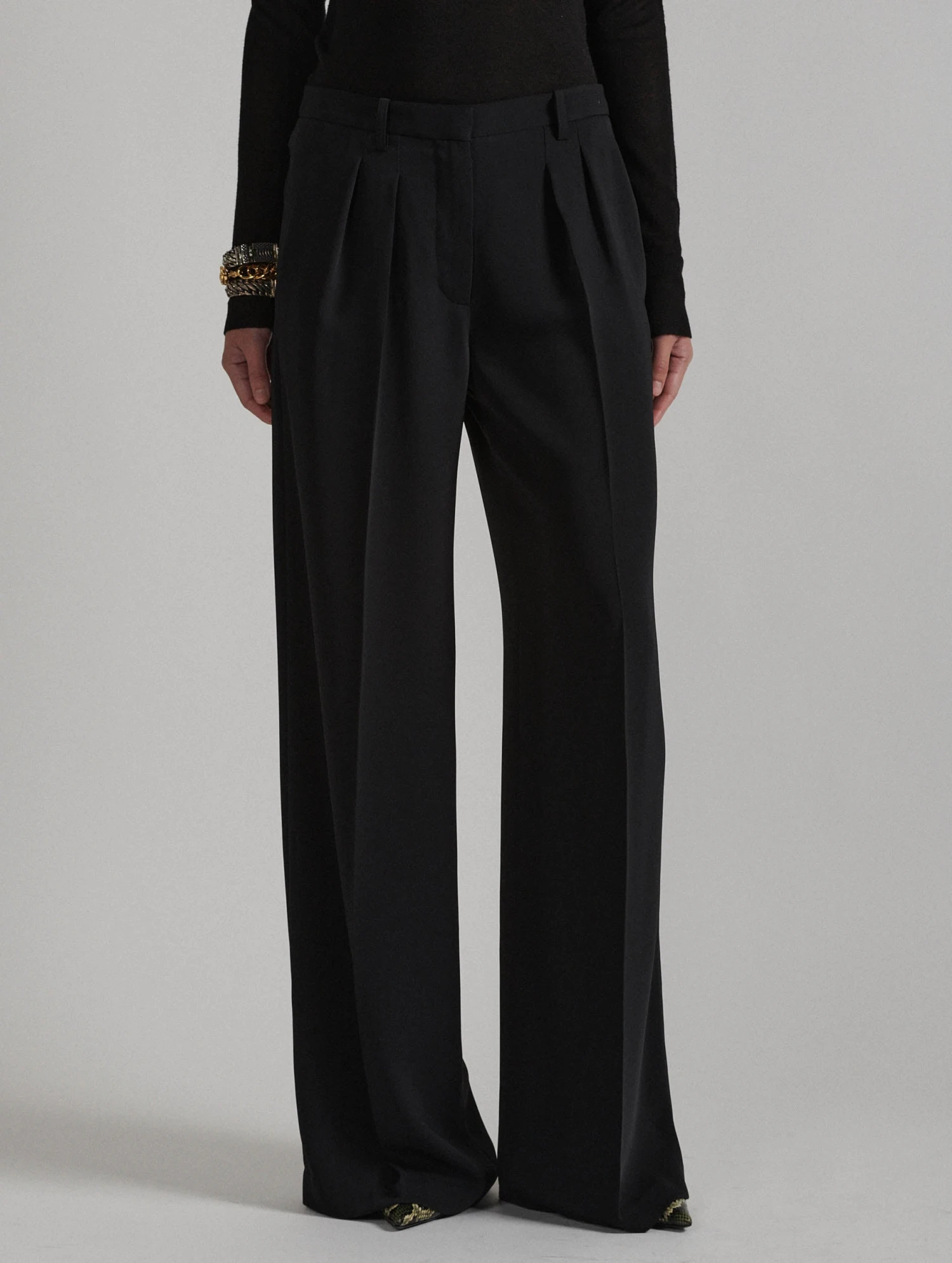 Pantalon Large En Crêpe Fluide Noir