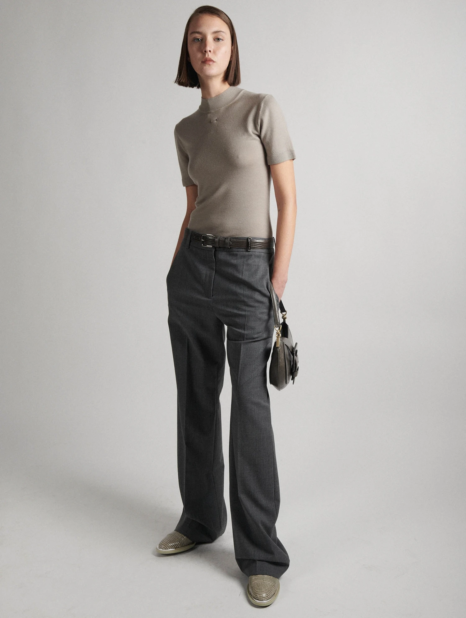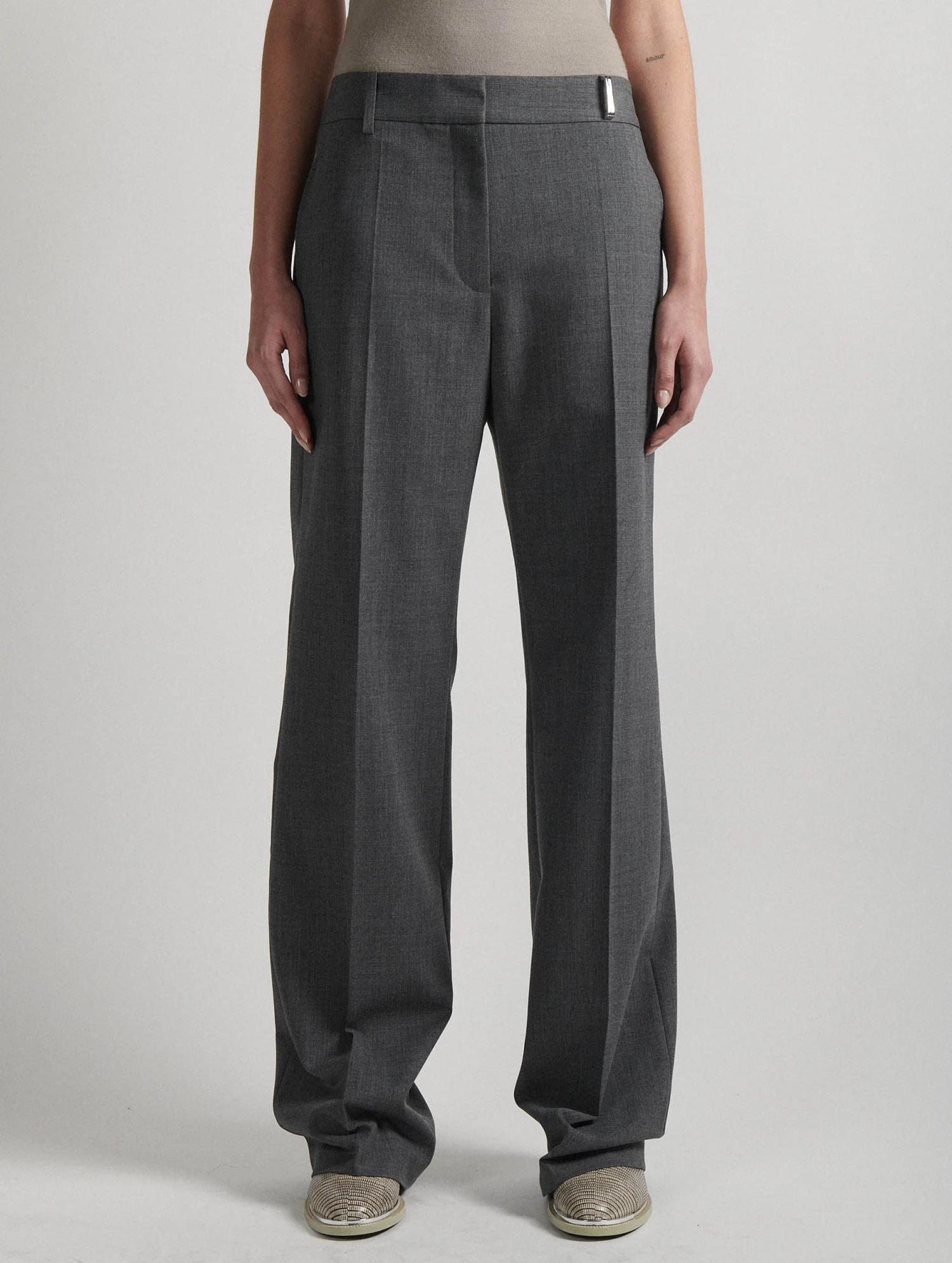 Pantalon Taille Basse En Gabardine De Laine Gris