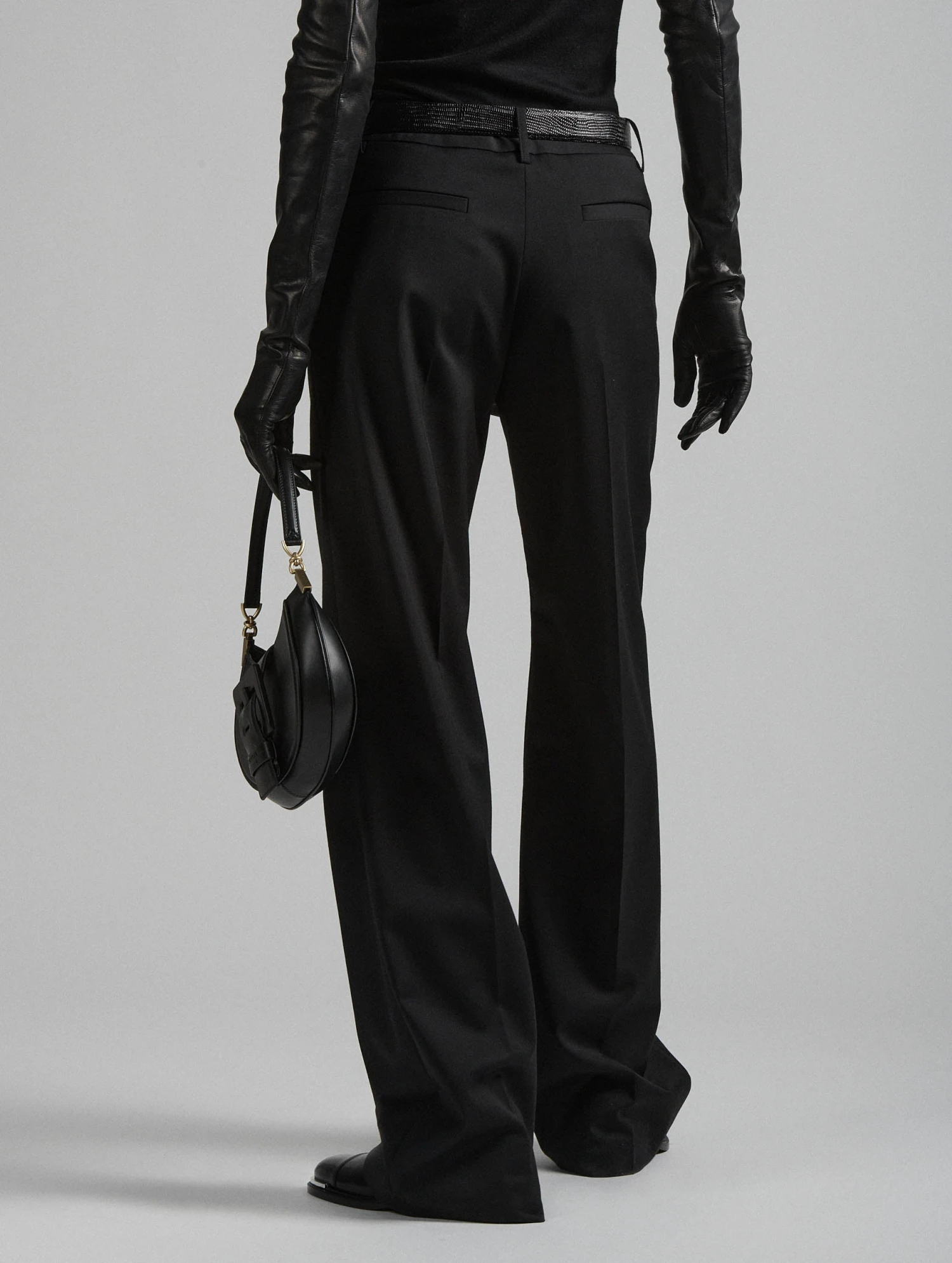 Pantalon Taille Basse En Gabardine De Laine Noir