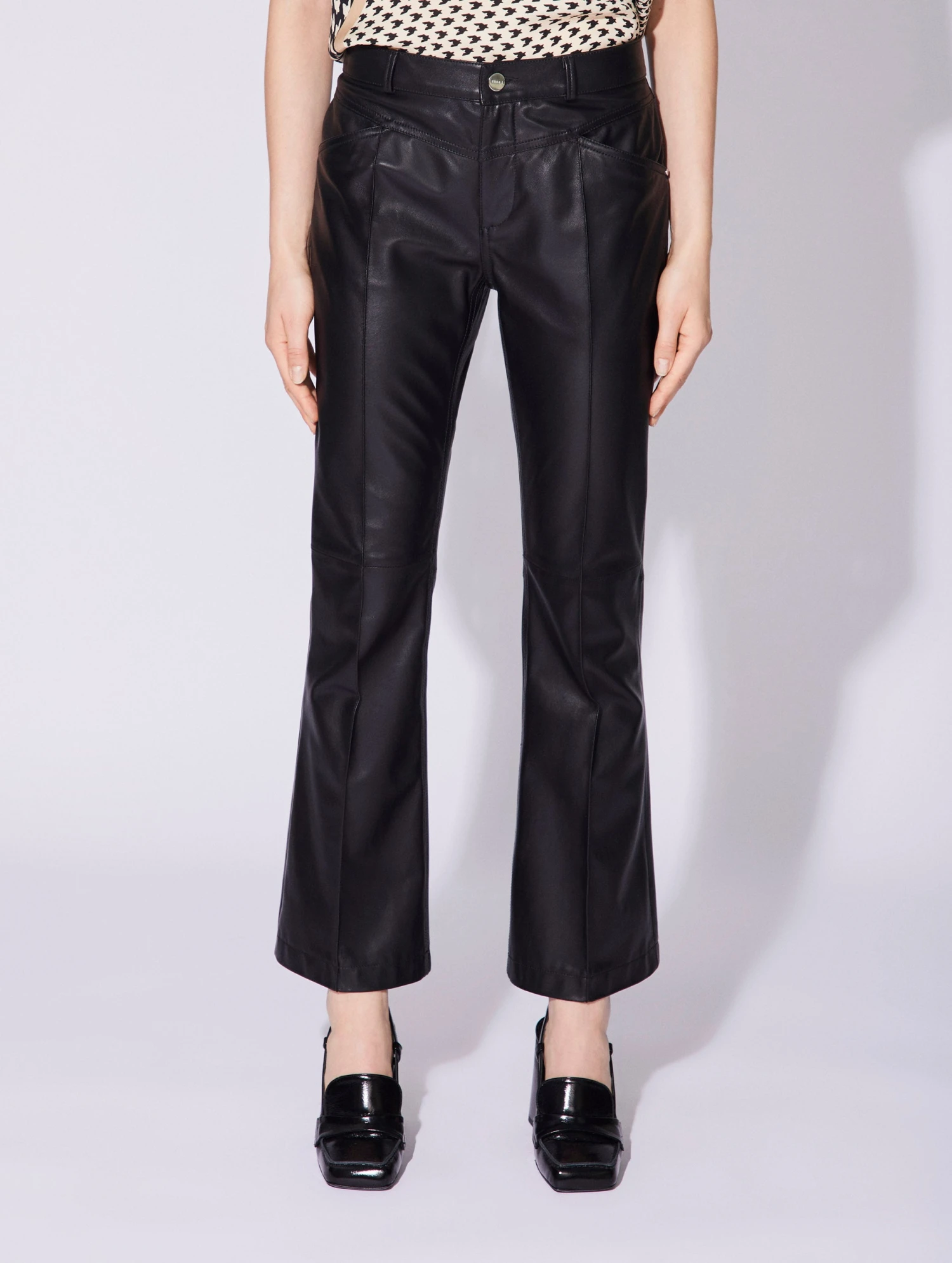 Pour Barbara Bui, le pantalon en cuir est un indispensable du vestiaire féminin en toute saison. Inspirée par les années 70, notre créatrice revisite cet iconique dans une coupe trompette évasée et seyante. Ce pantalon en cuir plongé noir est doté de poches avant et de poches plaquées à l’arrière pour un tombé flatteur. Son pli cousu sur la jambe promet une allure longiligne, que vous portiez ce pantalon en cuir noir avec une paire de bottines ou de mocassins. La manière dont nos ateliers ont imaginé la construction de ce pantalon femme et agencé ses coutures apporte structure et élégance à cet intemporel. Porté avec une chemise décontractée ou un top plus habillé en soirée, ce pantalon en cuir d’agneau plongé vous accompagnera année après année.