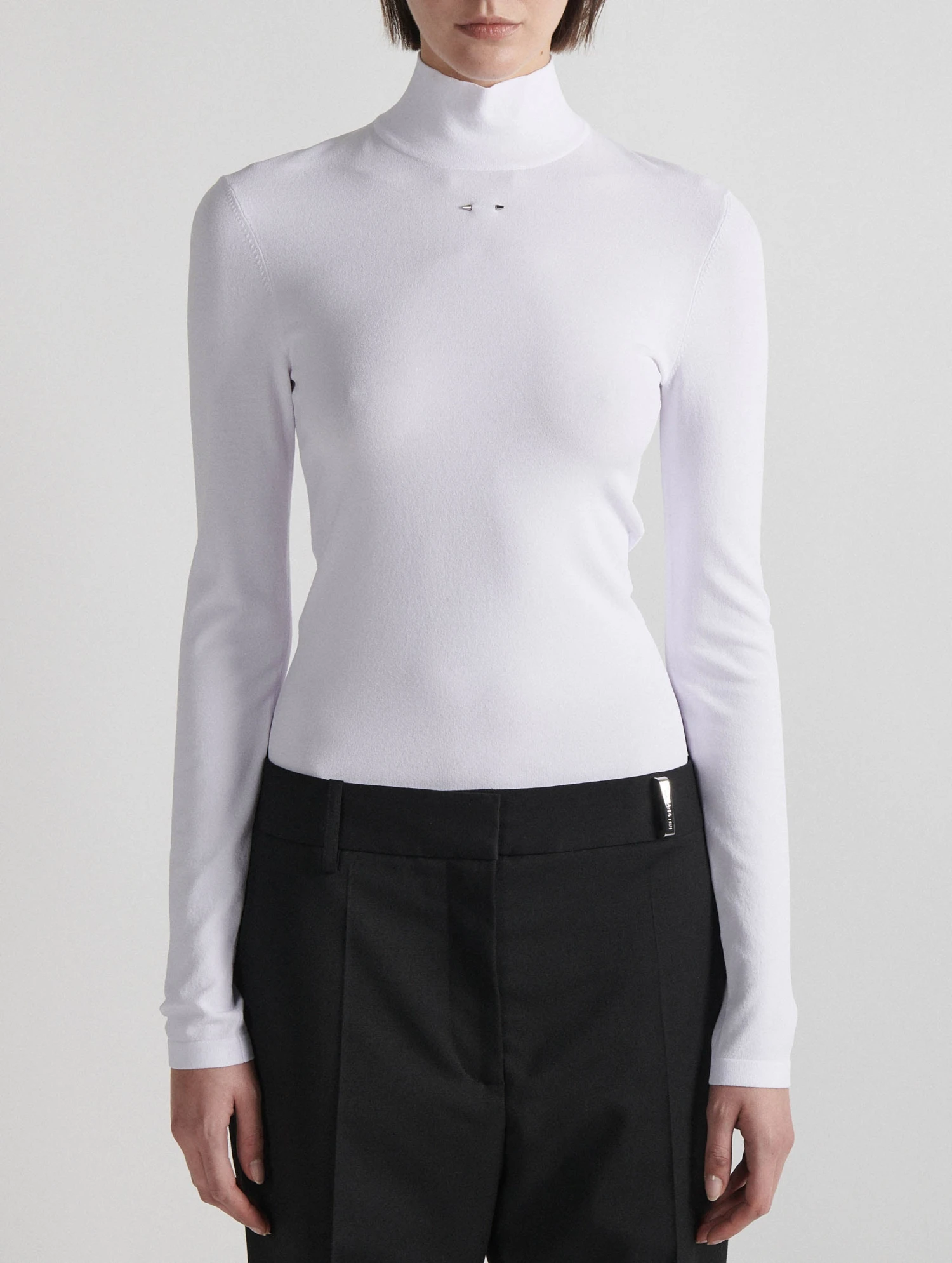 Pull à Col Montant En Maille Seconde Peau Blanc