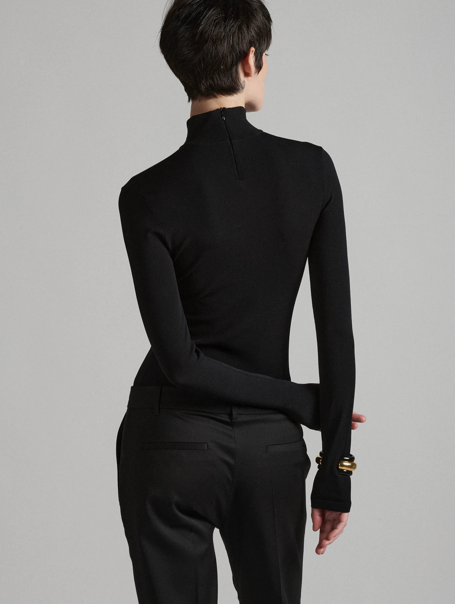 Confectionnée dans un mélange de viscose, notre maille seconde peau stretch se prête à toutes les envies de superposition. Alors que cette saison privilégie les jeux de layering, Barbara Bui a imaginé ce pull fin à col montant pour apporter une touche de couleur à tous les looks. Sous une chemise en popeline, un pull en maille mérinos ou une veste de costume, ce pull à col montant ne vous quittera plus. Fermeture par un zip dos invisible et piercing signature amovible sur le devant.