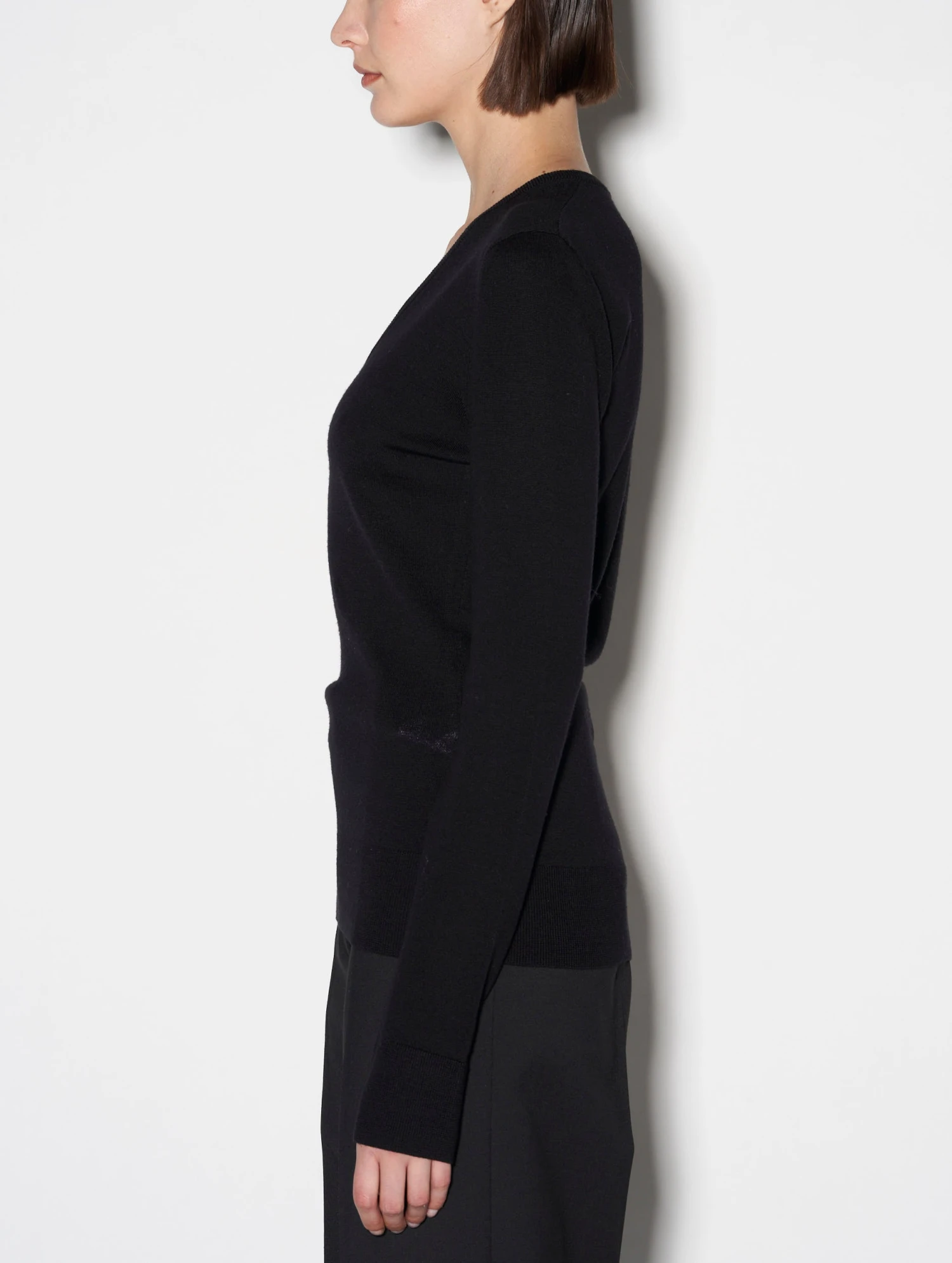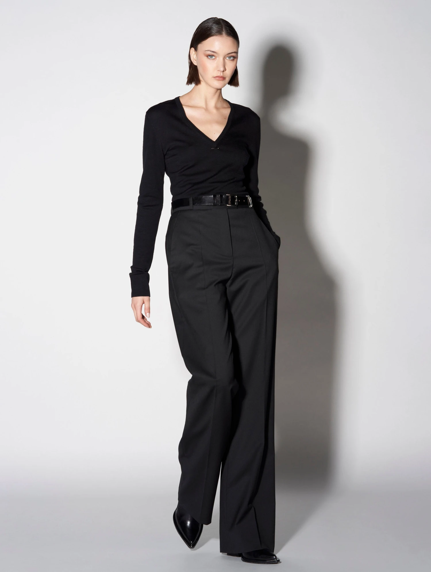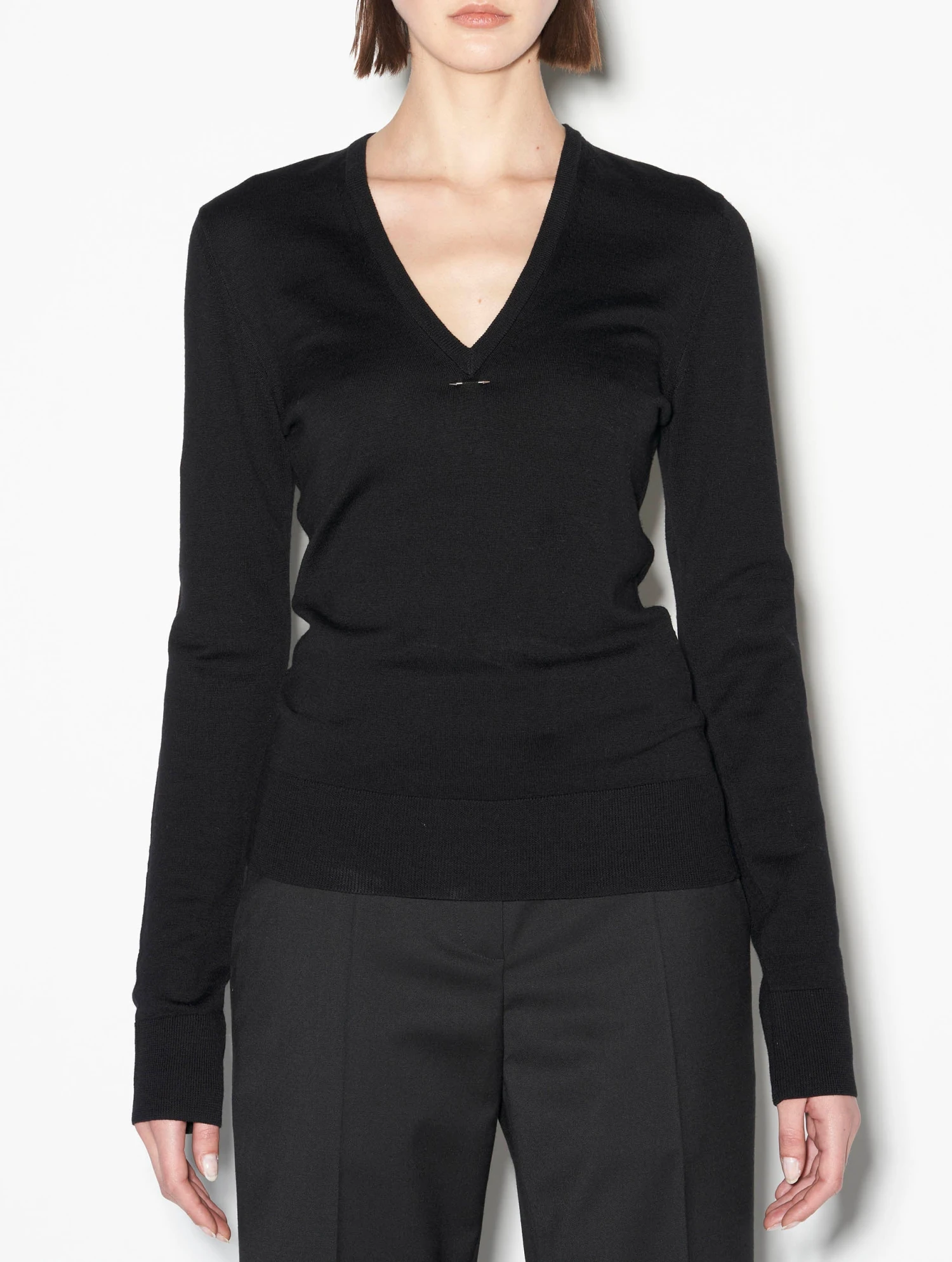 Pull Col V Bijou Piercing En Maille Mérinos Noir