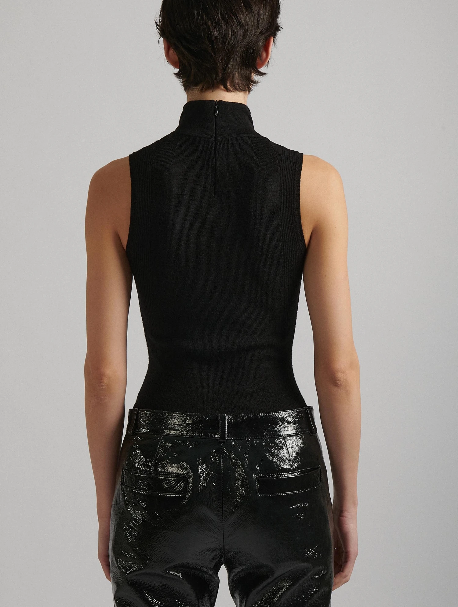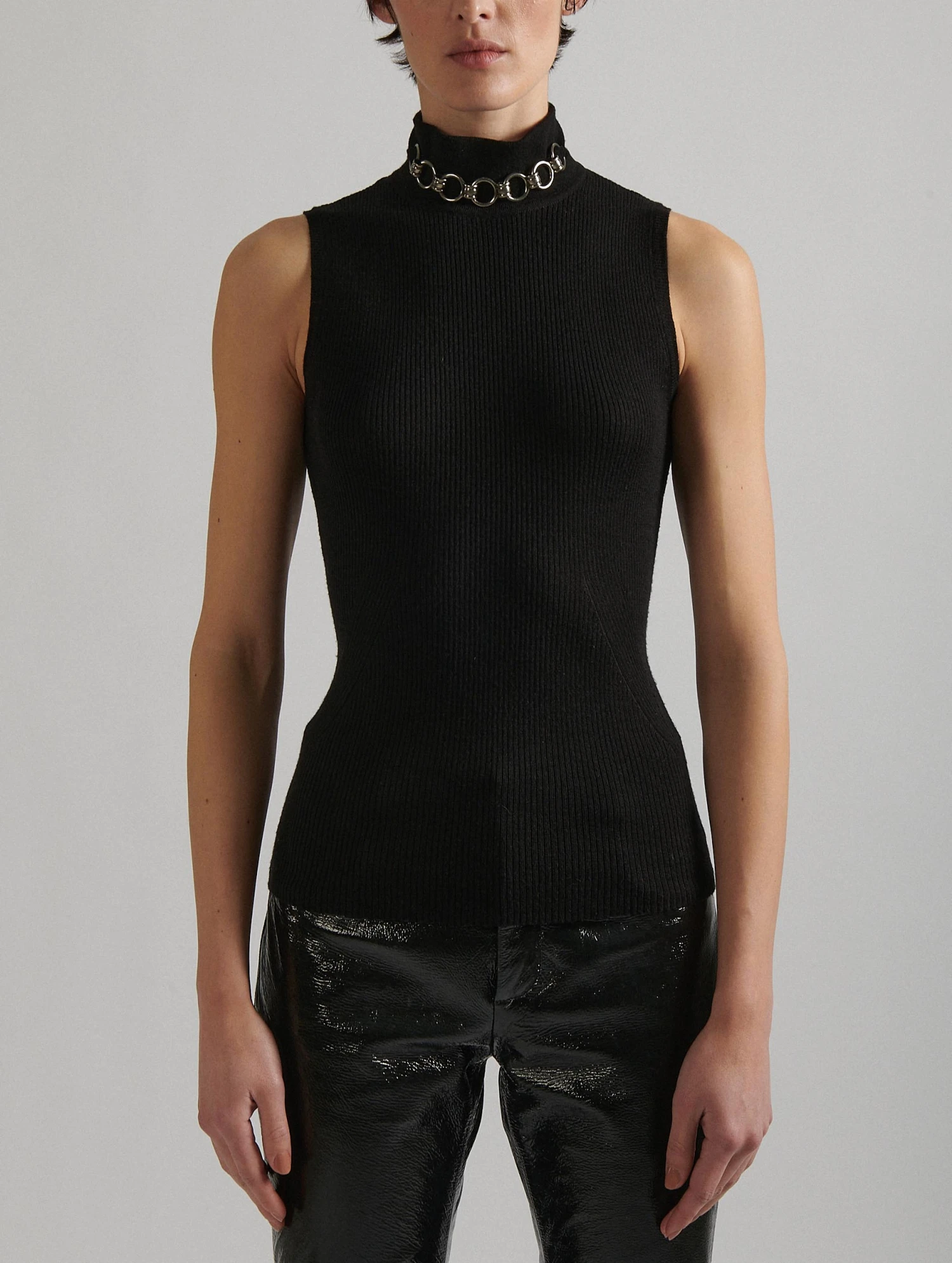 Pull Sans Manches à Col Roulé Noir Col Bijou