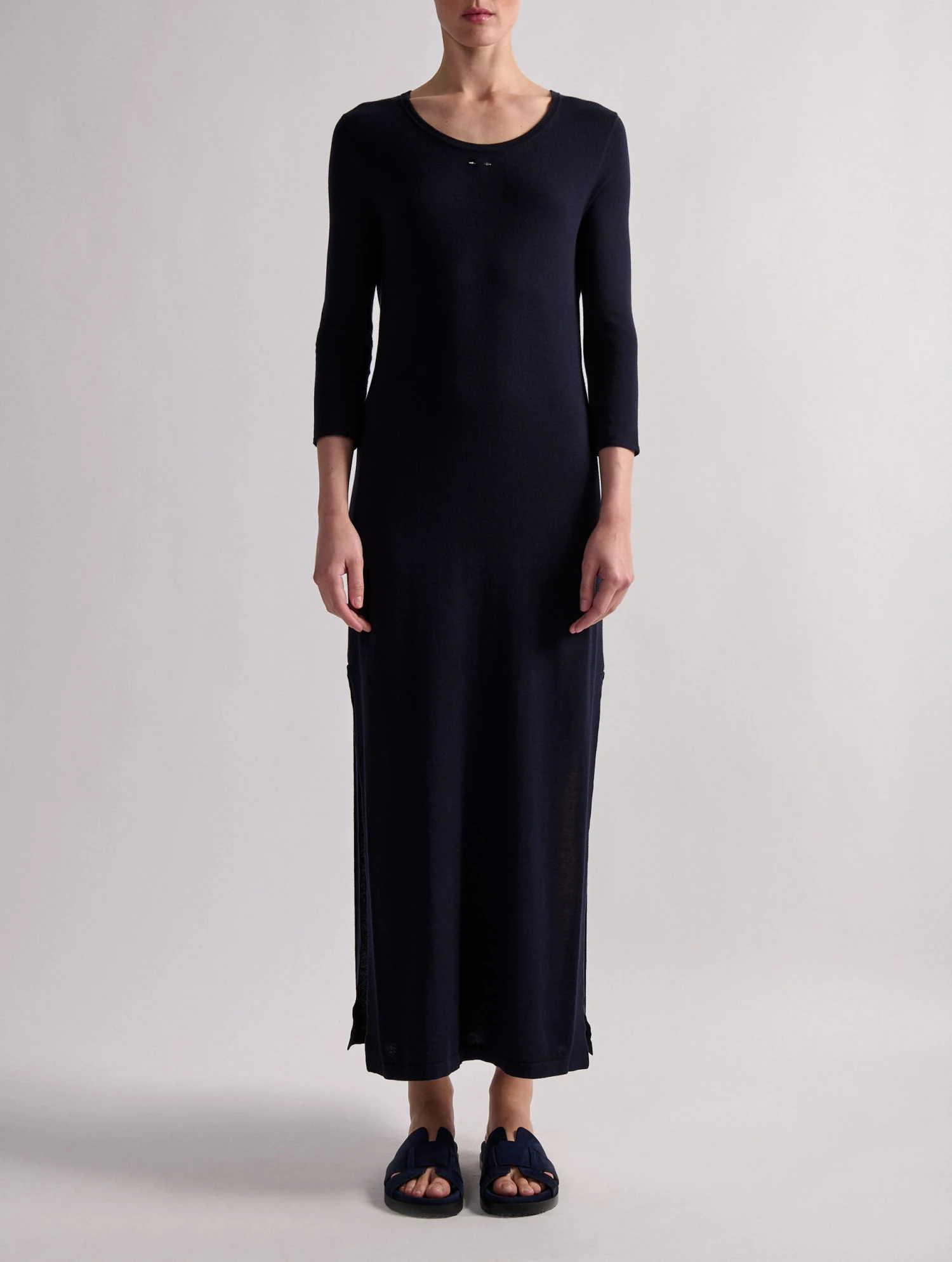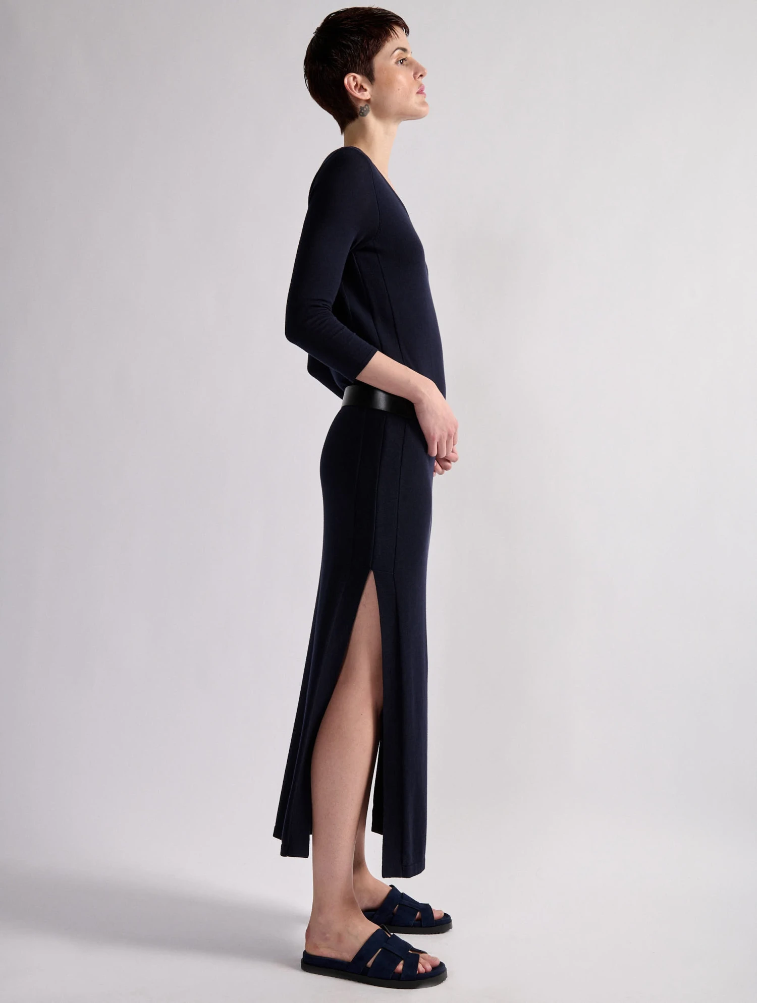 Parfaite pour cĂ©lĂ©brer l’arrivĂ©e du printemps ou Ă l’occasion d’un soir d’Ă©tĂ©, cette robe manches longues est rĂ©alisĂ©e dans une maille fine au porter flatteur et confortable. De chaque cĂ´tĂ©, une fente dĂ©voile la longueur de jambes pour une silhouette fĂ©minine et une complète libertĂ© de mouvement. PortĂ©e ceinturĂ©e avec une paire de sandales plates, cette robe Ă encolure ronde se fera aisĂ©ment une place dans vos looks printemps-Ă©tĂ©. Ce modèle intemporel est proposĂ© en coloris marine, vert olive ou dans un violet bougainvillier vibrant.