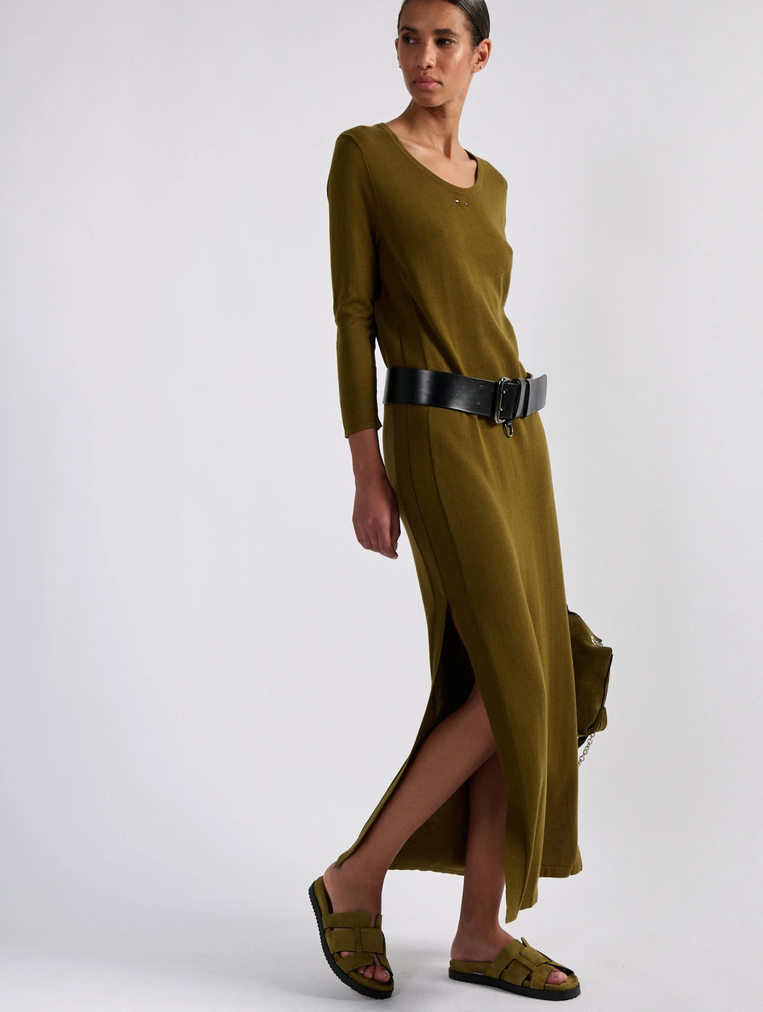 Parfaite pour célébrer l’arrivée du printemps ou à l’occasion d’un soir d’été, cette robe manches longues est réalisée dans une maille fine au porter flatteur et confortable. De chaque côté, une fente dévoile la longueur de jambes pour une silhouette féminine et une complète liberté de mouvement. Portée ceinturée avec une paire de sandales plates, cette robe à encolure ronde se fera aisément une place dans vos looks printemps-été. Ce modèle intemporel est proposé en coloris marine, vert olive ou dans un violet bougainvillier vibrant.