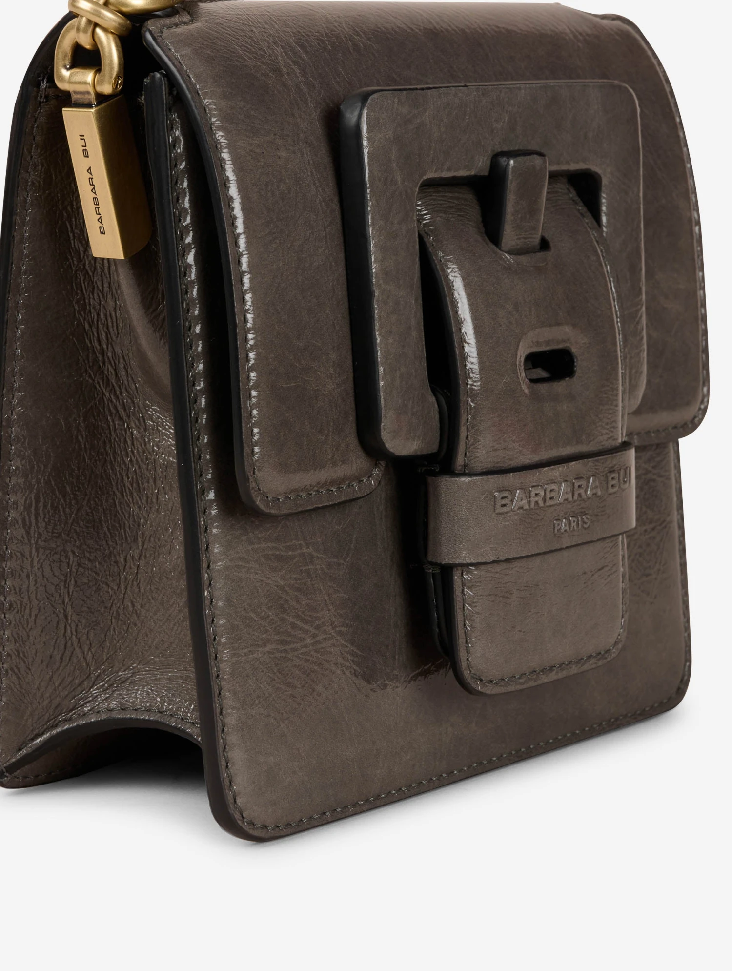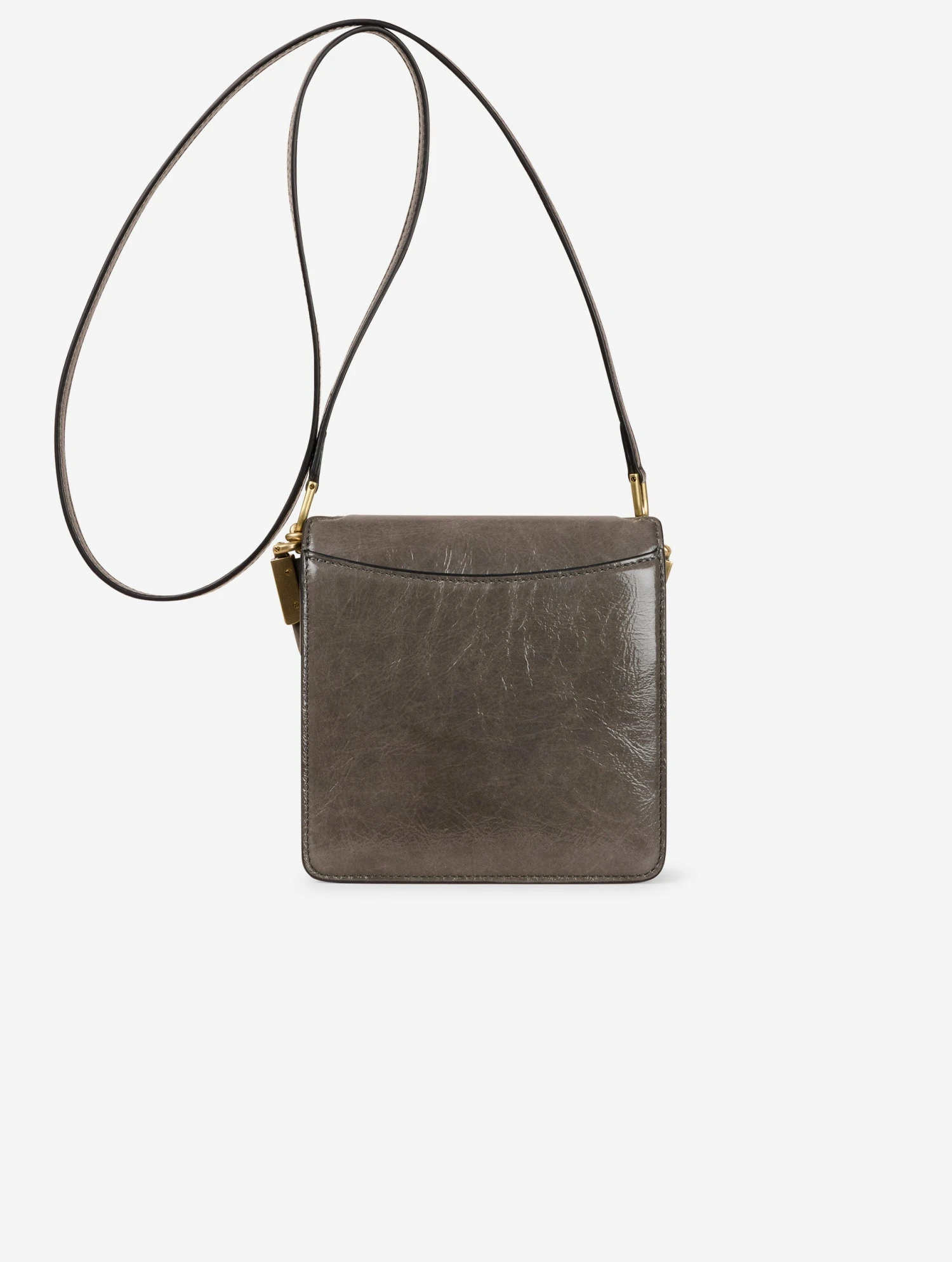 Sac « LOVE ME » en cuir verni naplak gris. Fine et longue bandoulière de 120 cm pour le porter croisé. Maxi boucle décorative en cuir renforcé sur le rabat à fermoir magnétique. Poche avant, poche dos idéale pour garder son smartphone sous la main, et poche intérieure passepoilée. Hauteur 16 cm / Longueur : 16 cm / Profondeur 6,5 cm.