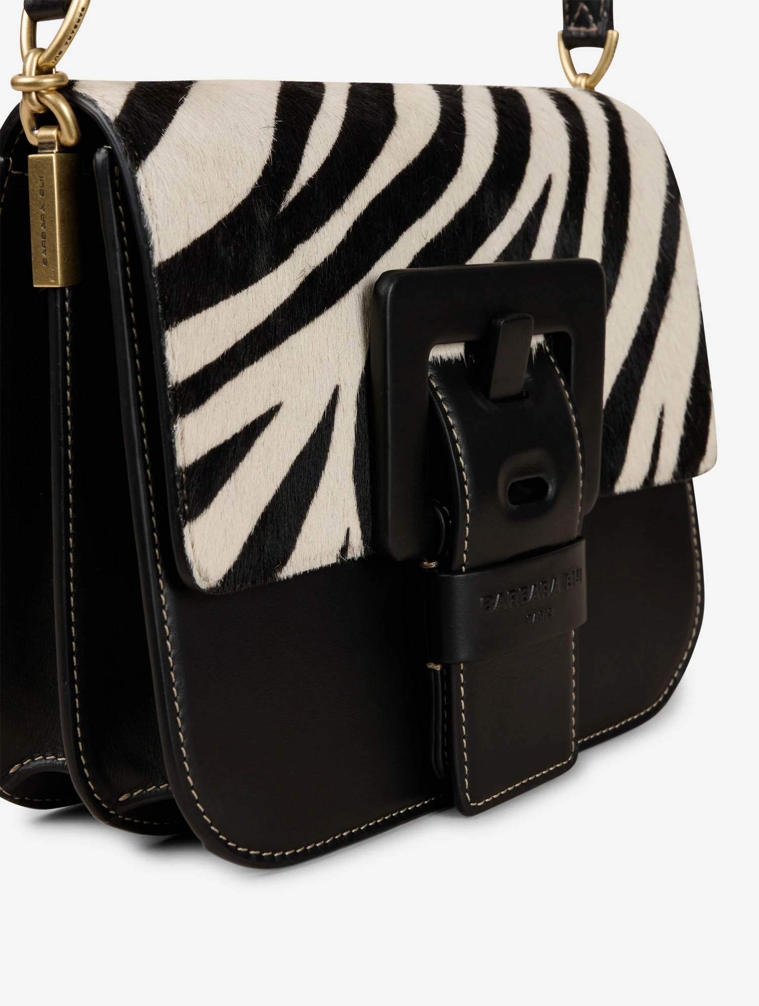 Sac « Touch Me » En Cuir Noir Et Pony Zèbre