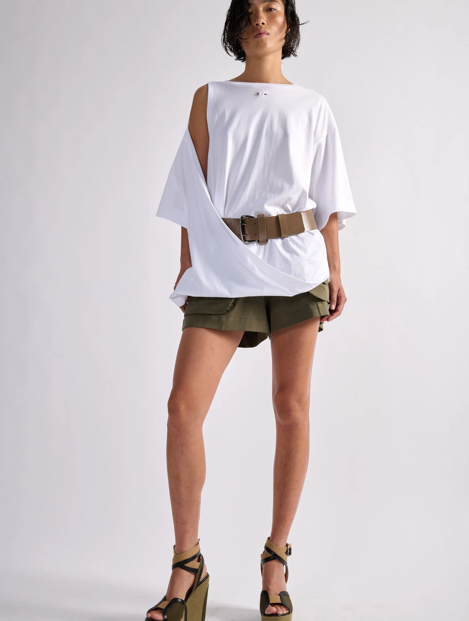 Décliné dans une gabardine de laine stretch sable ou navy, ce pantalon jambes larges à plis est doté de deux rangées de passants pour y glisser, au choix, une ou deux ceintures. En utilisant la second rangée de passants, vous obtiendrez ainsi un effet taille basse. Des finitions méticuleuses héritées du savoir-faire sartorial bien connu de la Maison.