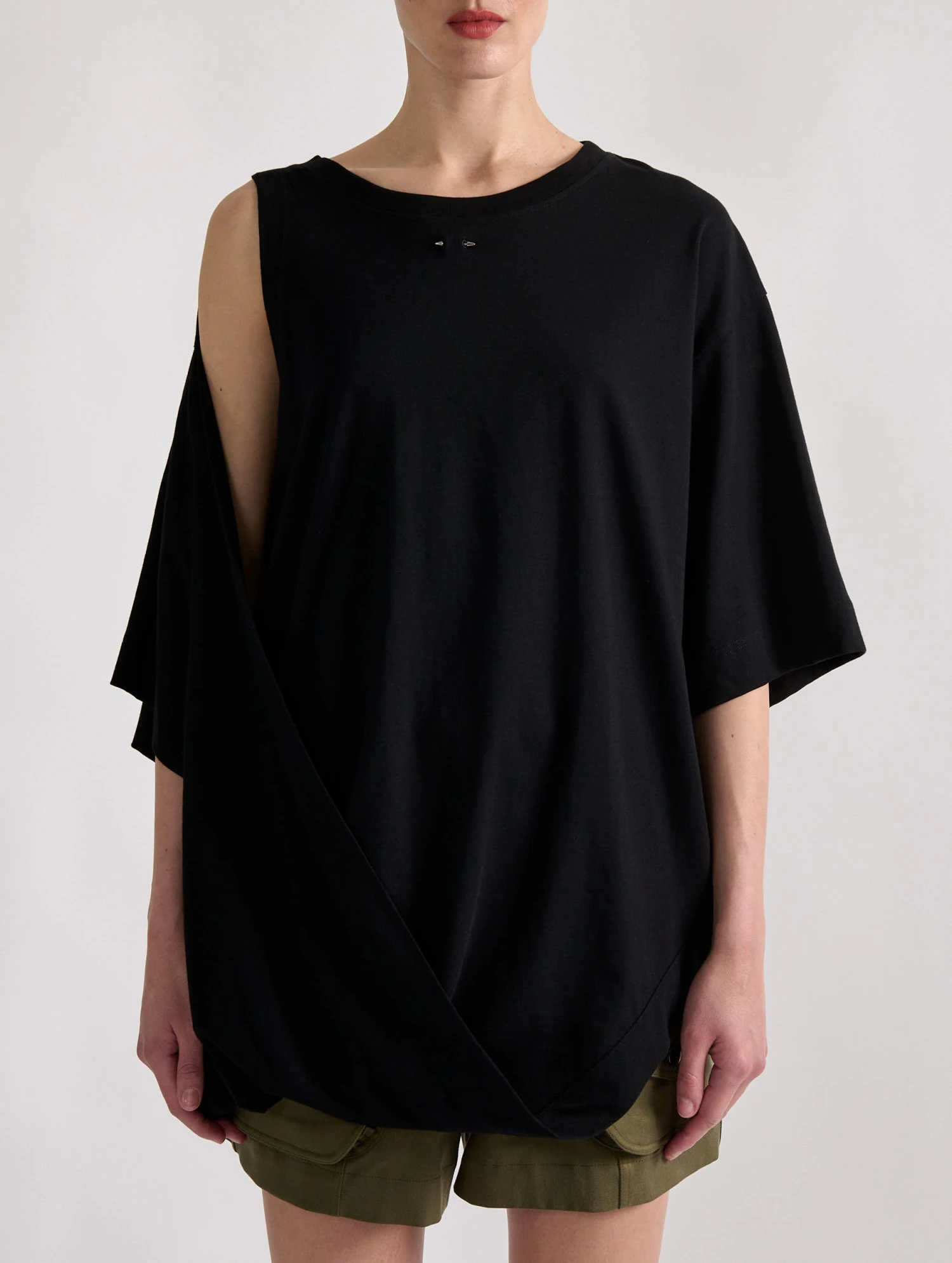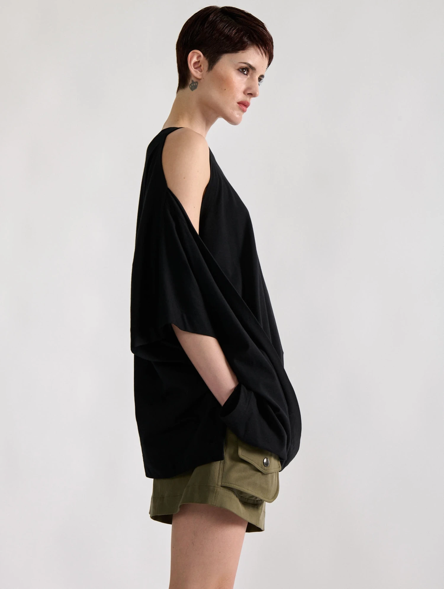 Intemporel et confortable, le tee-shirt en coton n’a de cesse de se réinventer. Pour les beaux jours, Barbara Bui imagine un volume oversized et un jeu de drapé asymétrique permettant de créer une ouverture dévoilant le bras. Que vous portiez ce tee-shirt femme de manière décontractée ou glissiez une ceinture dans cette ouverture pour un porter plus structuré, les possibilités sont multiples pour créer un look à votre image.