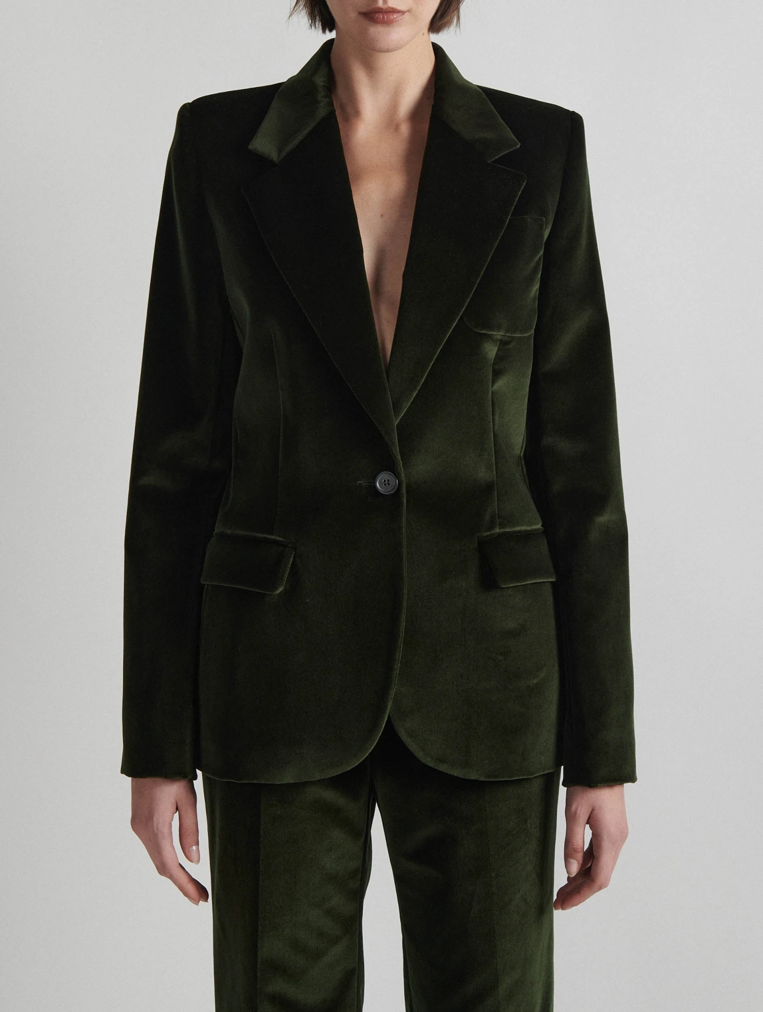 Veste Cintrée En Velours Vert