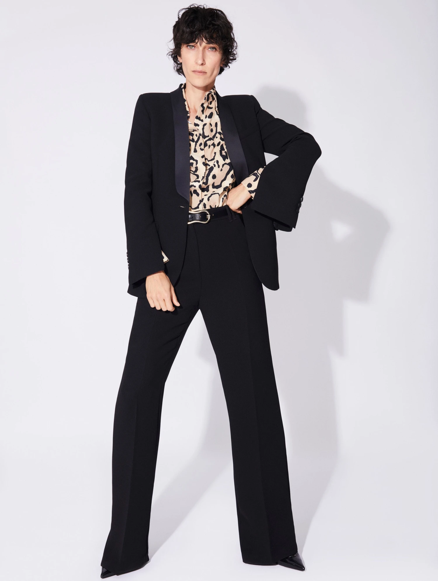 Cette veste de costume pour femme adopte une coupe affûtée, reflet du savoir-faire tailleur de notre maison parisienne. Confectionnée dans un crêpe fluide au tombé impeccable, cette veste cintrée d’inspiration smoking se distingue par son col châle en satin ton sur ton. Dotée d’un seul bouton et de poches à rabats, cette veste femme peut être portée de manière classique comme les manches ouvertes pour un effet cape, grâce à ses zips poignets invisibles. Sa fente dos assure aisance et liberté de mouvement tandis que son bijou piercing amovible lui confère un twist rock. Doublée de notre imprimé « Bengal », cette veste de smoking signera vos plus beaux looks de la saison. Succombez pour le noir ou le blanc intemporel ou pour son coloris tilleul.