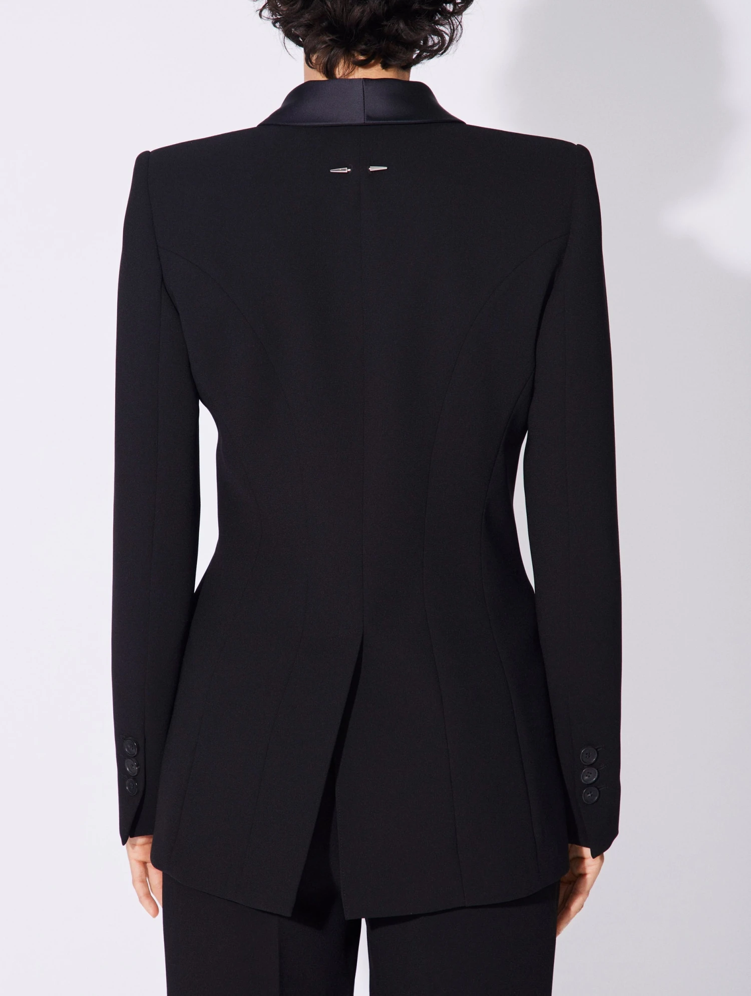 Veste De Costume Cintrée En Crêpe Noir Col Satin