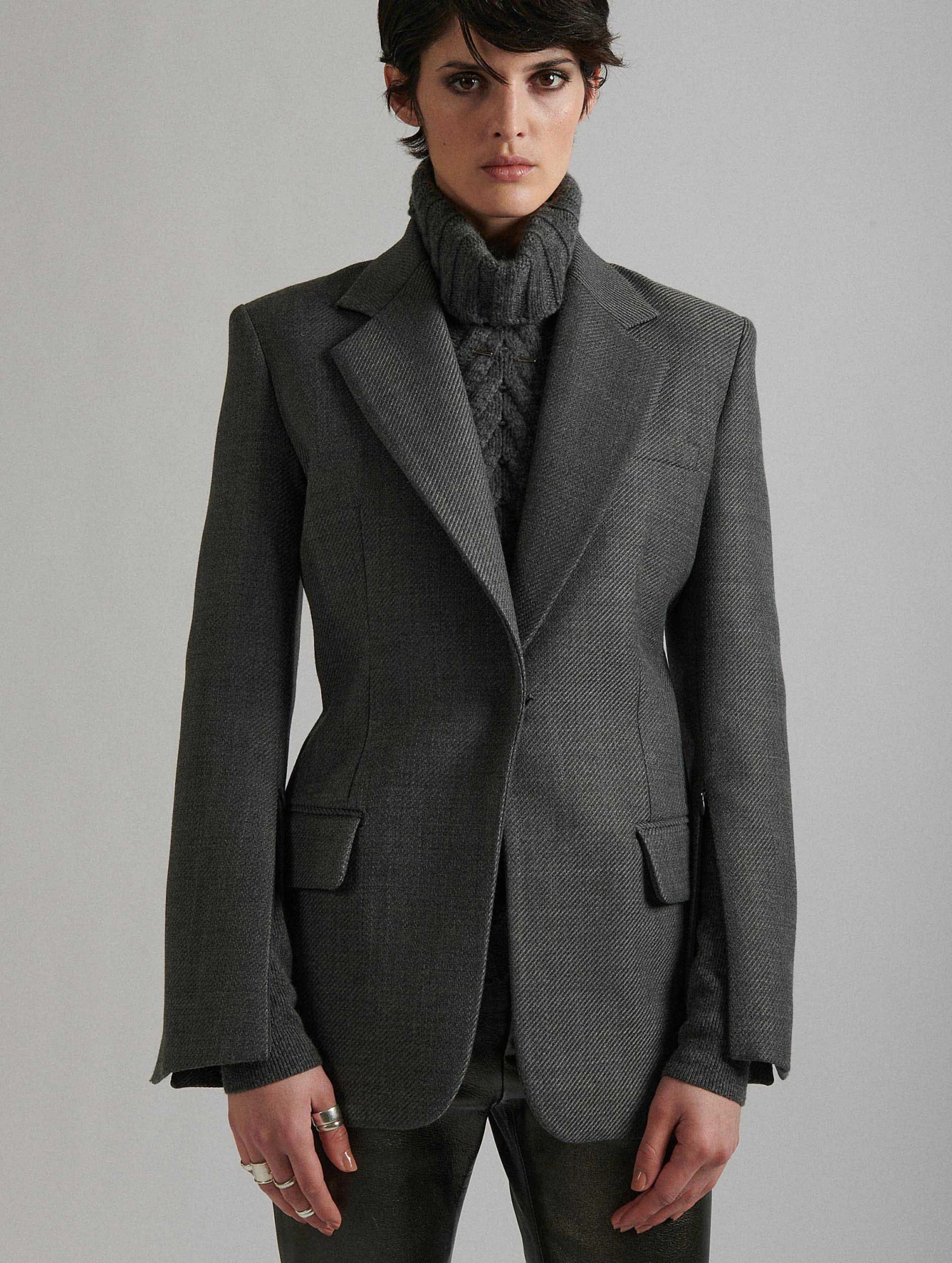 Veste De Costume Cintrée En Whipcord Gris