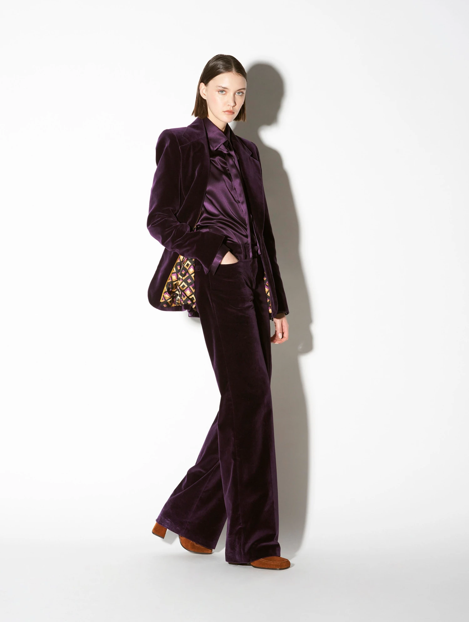 Veste De Costume En Velours Lisse Prune