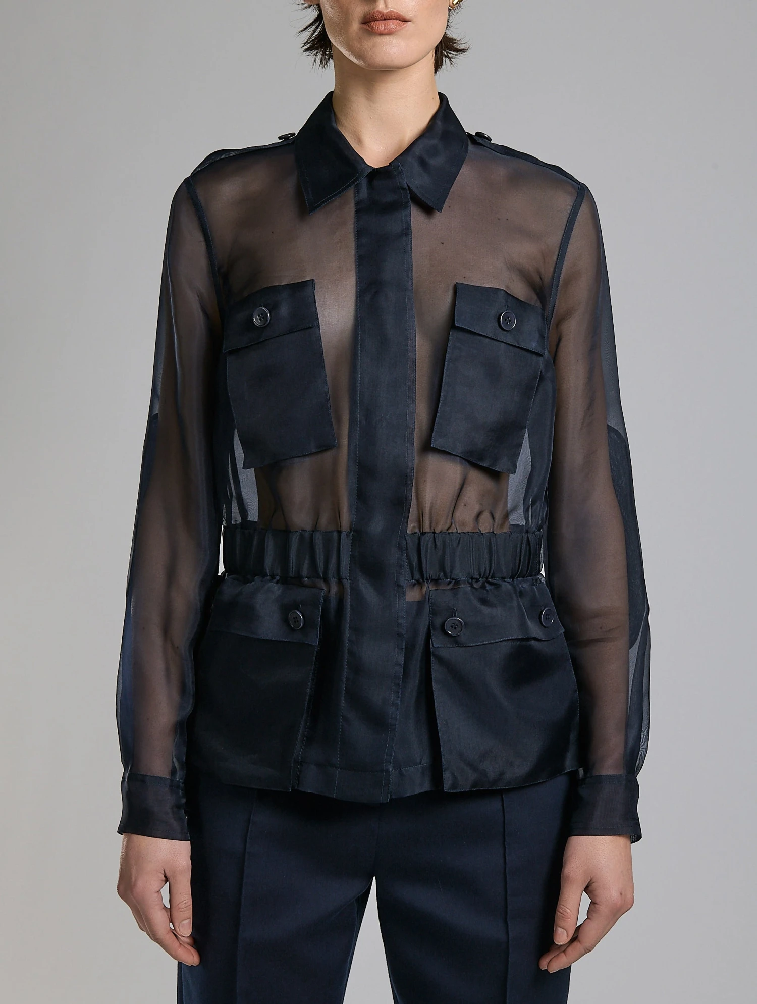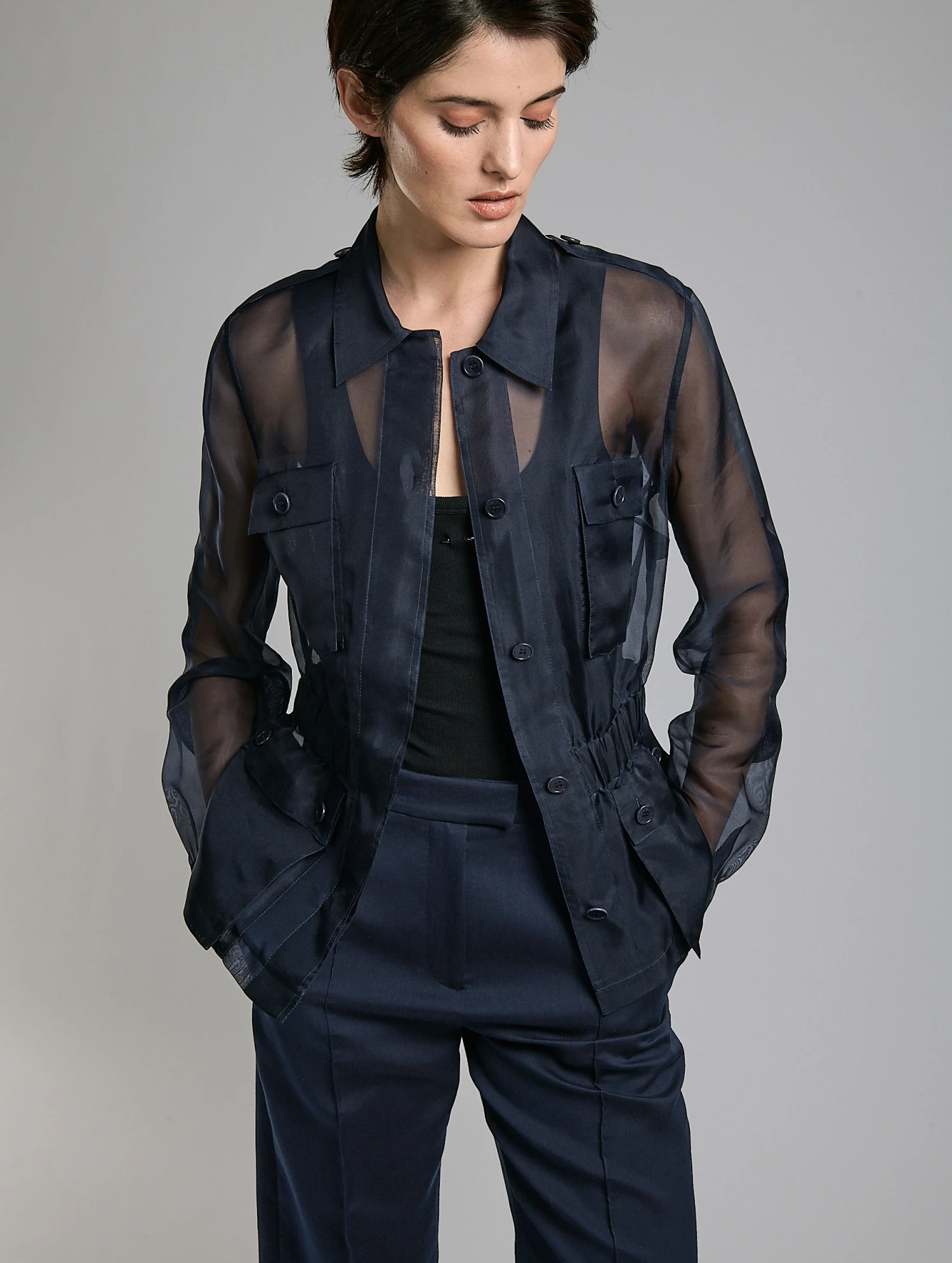 Veste Saharienne En Organza De Soie Marine